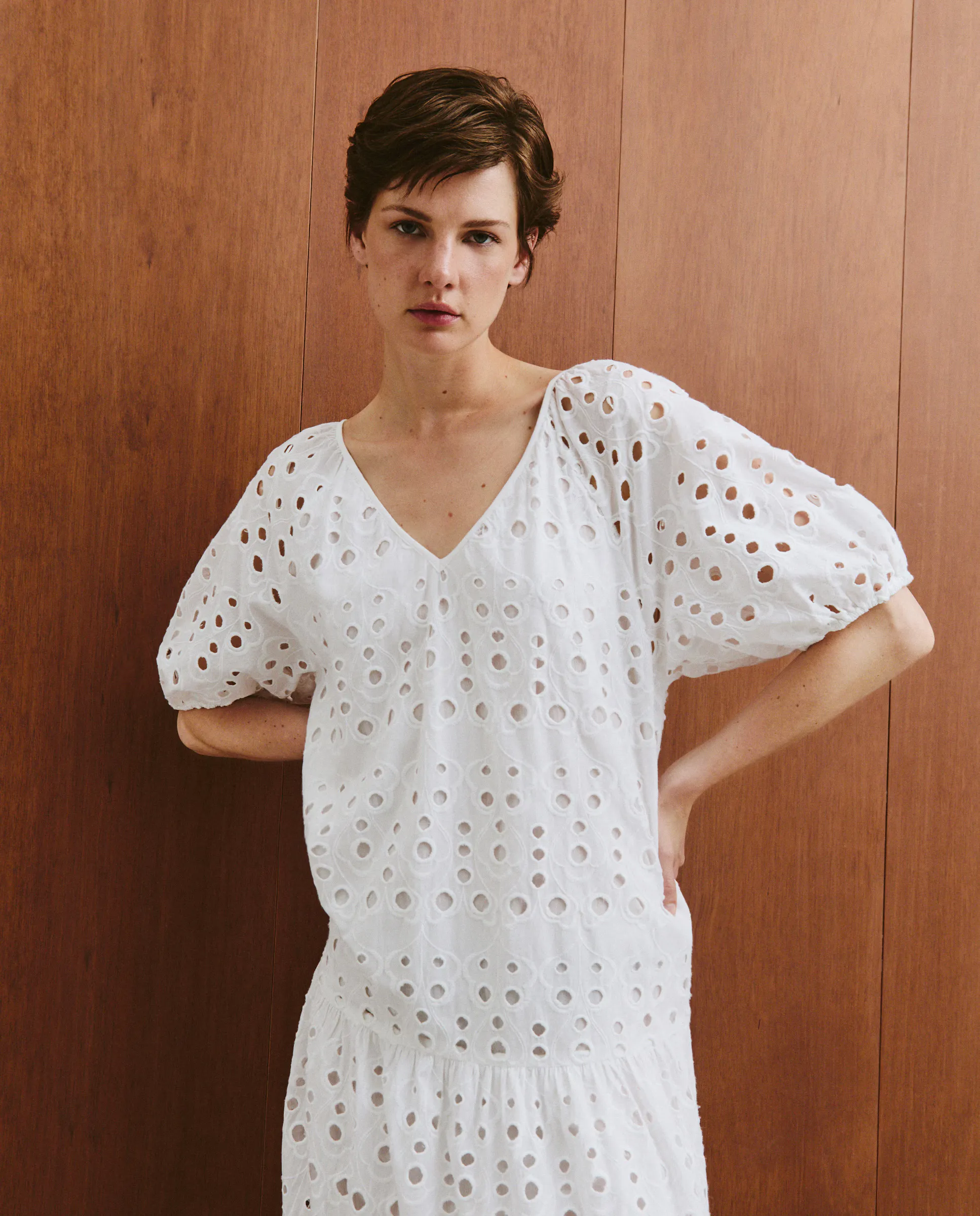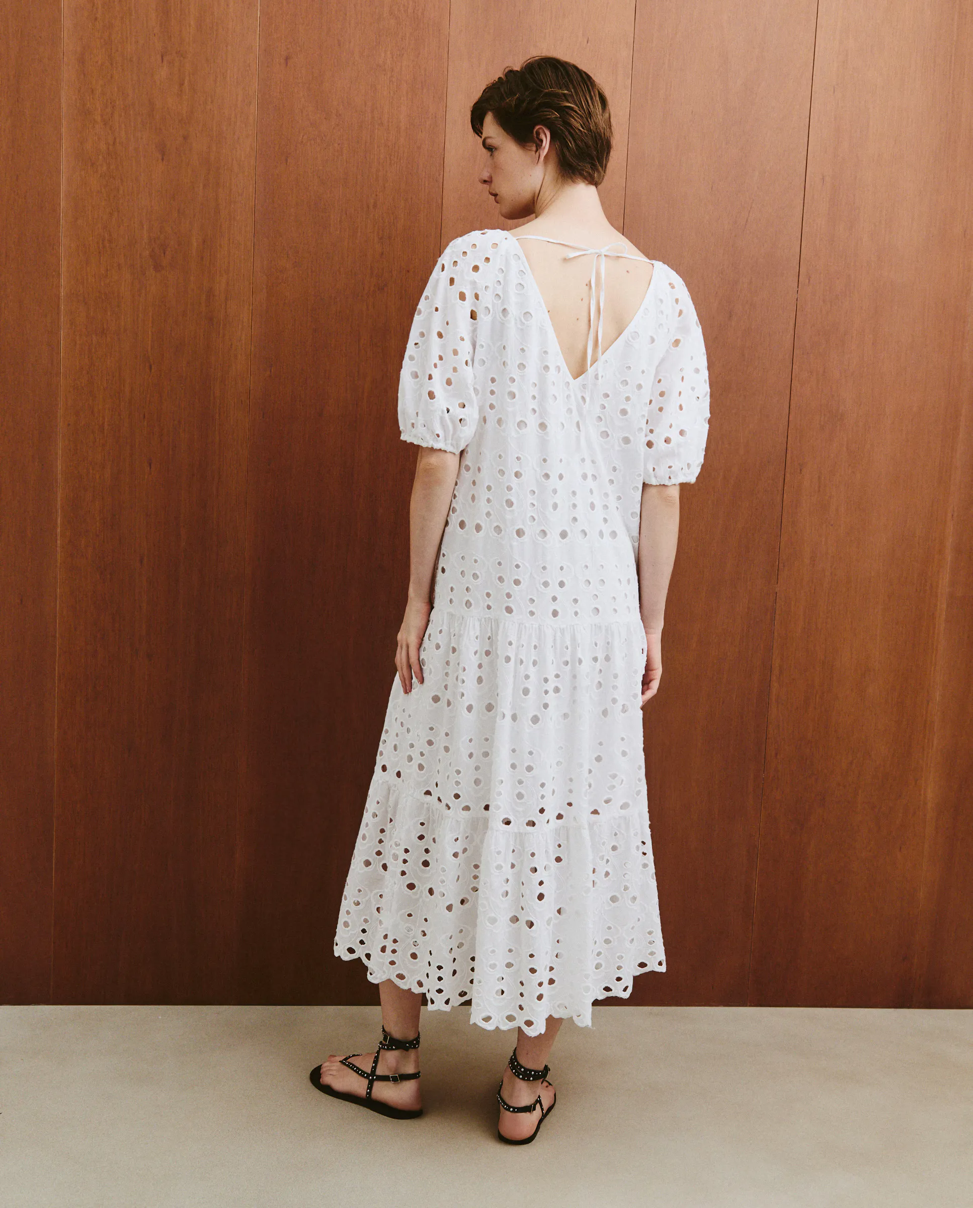 Однотонное длинное платье с короткими рукавами shifly.