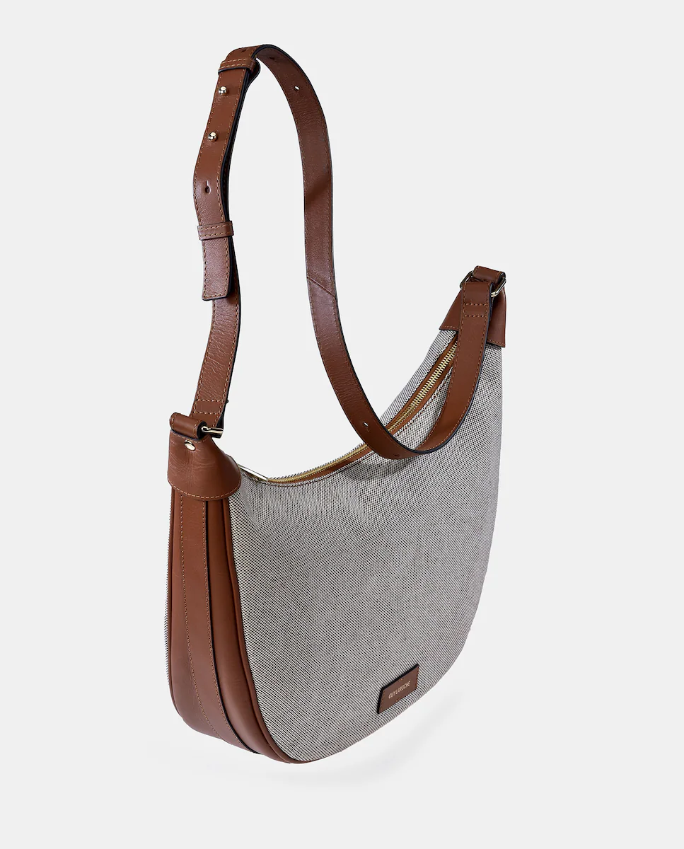 Большая плечевая сумка-гондола марки GUY LAROCHE, выполненная из канваса и кожи. Дизайн с длинной регулируемой ручкой и основным замком на металлической молнии. Внутри отделка текстильным материалом с 3 карманами, один из которых на молнии.