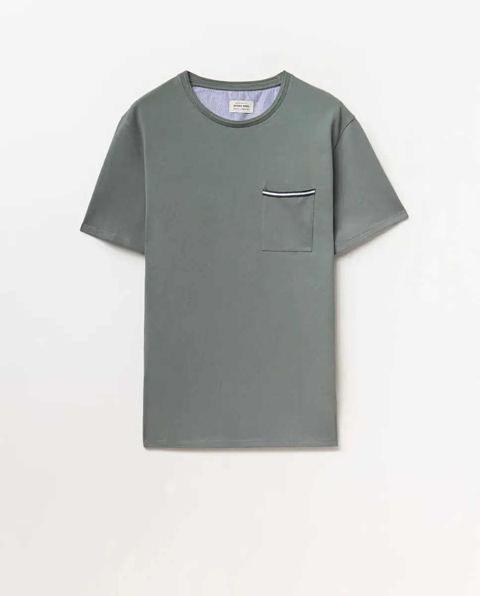 Футболка с коротким рукавом и карманом с отделкой из рибаны. 100% хлопок