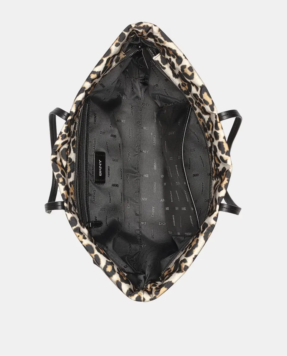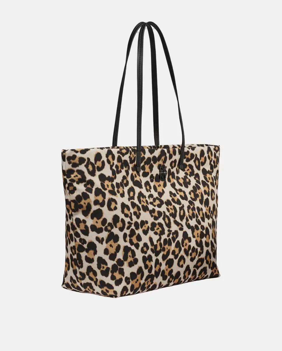 Сумка JENNY с плечевым ремнем, из нейлона с леопардовым принтом, с застежкой на молнии. Металлический логотип DKNY спереди.