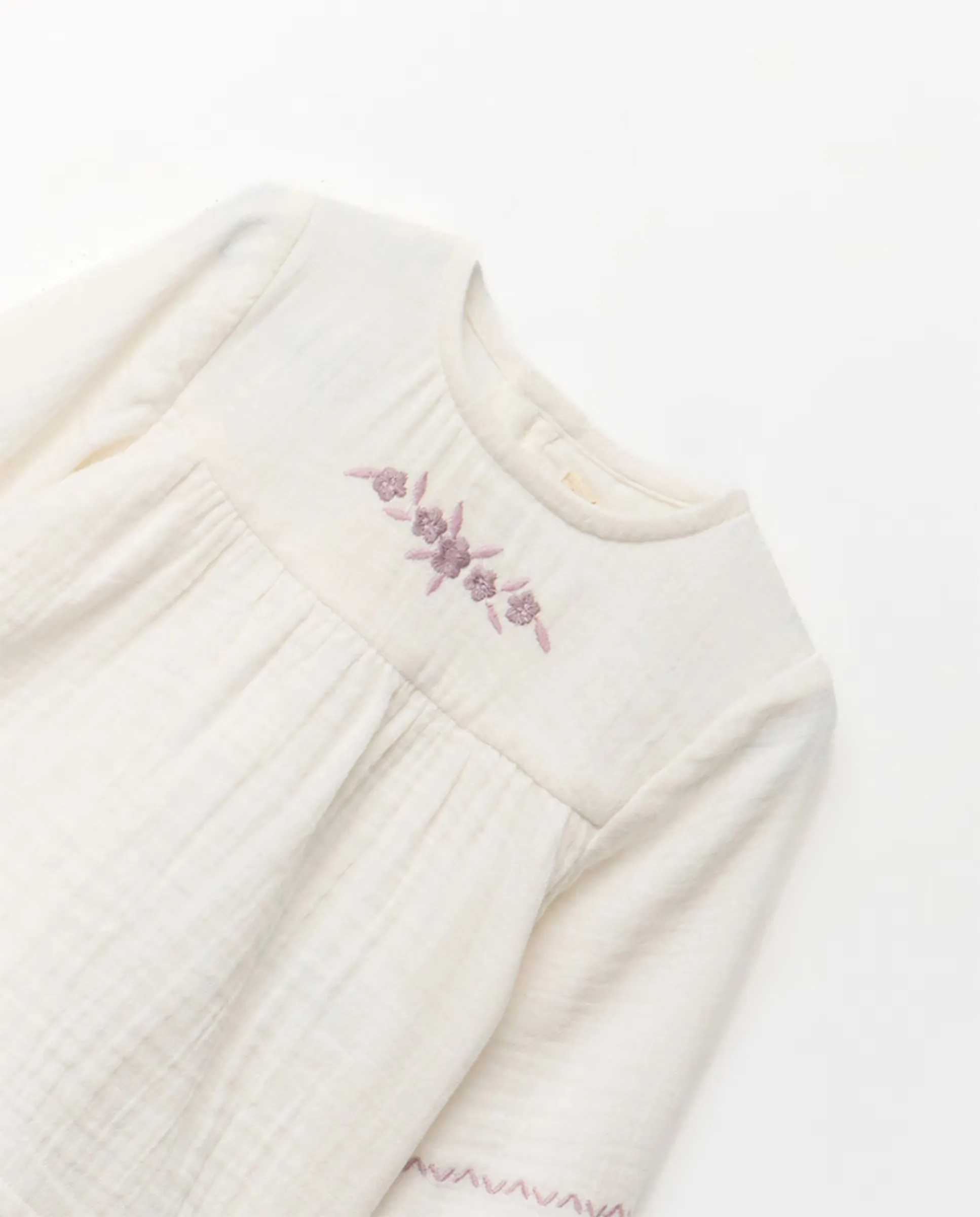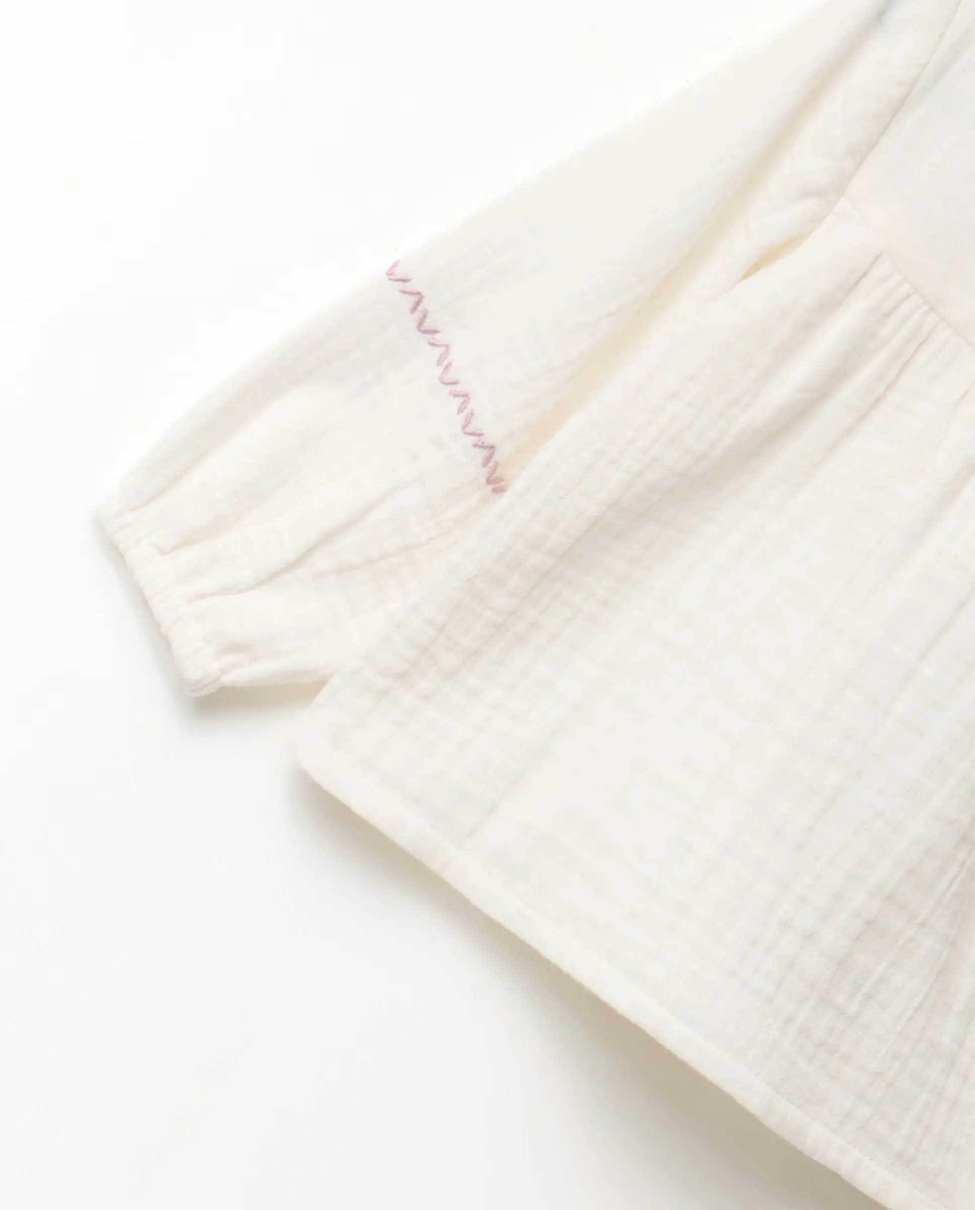 Блузка из бамбула с вышивкой на груди. Длинные рукава и застежка на кнопках сзади.