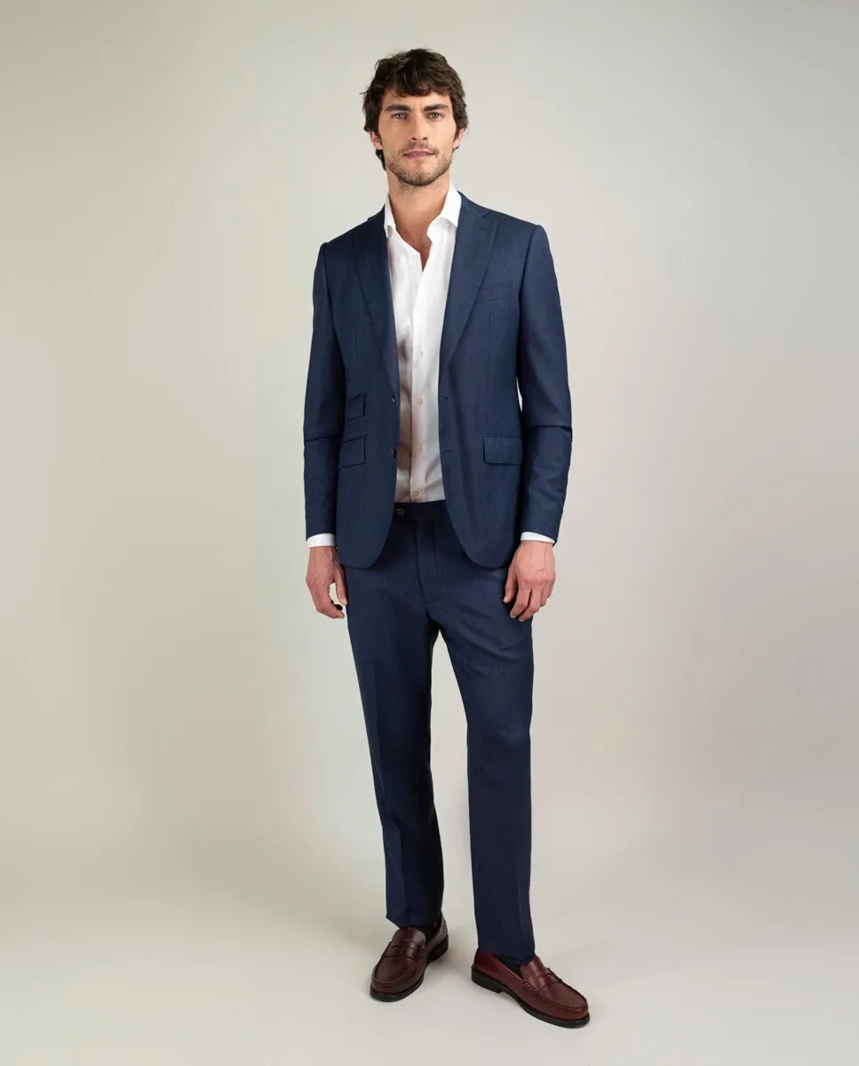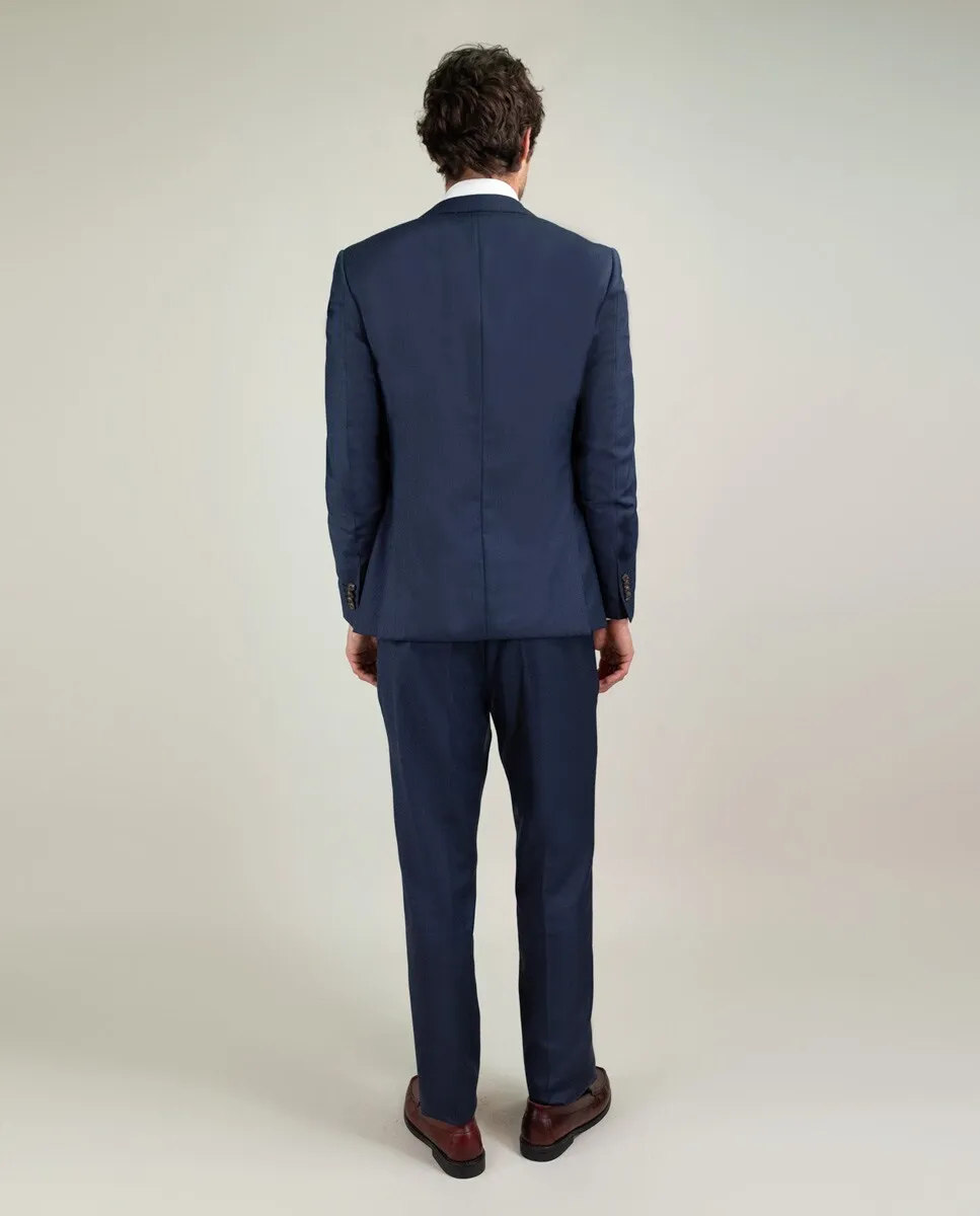 Американская куртка с пердизовым узором, сшитая из 100% шерсти. Имеет узкий силуэт с лацканом, застежка на два пуговицы. Накладные карманы на бедрах, один врезной карман на уровне груди. Манжеты на 4 пуговицы. Два разреза на спине. Имеет красные контрасты во внутренней части воротника, внутренней подкладке и люверсах.