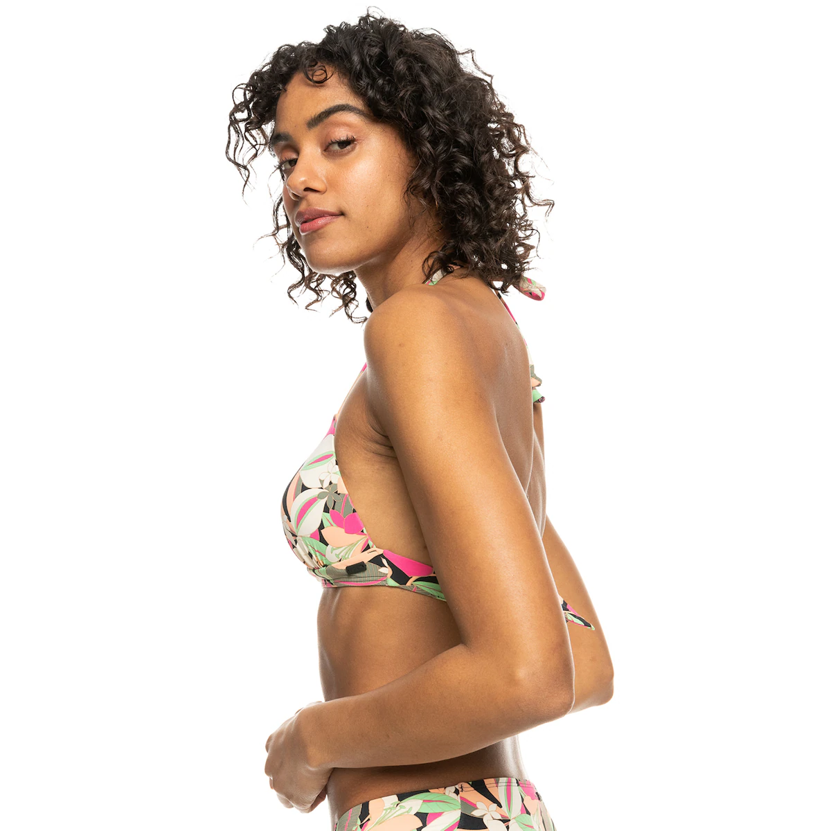 Топ бикини с спортивным воротником для женщин. Характеристики: Коллекция: PT Beach Classics. мягкая нейлоновая смесь. переработанная. прочная и эластичная. Дизайн: формованный треугольник. нормальная поддержка. спортивный воротник. регулируемые бретельки с завязками. формованные чашечки. мини-покрытие. завязка на шнурках. Размер чашки: лучше всего подходит для чашки A/B/C. Бренд: резиновая бирка ROXY, и внешний вид продукта может варьироваться в зависимости от ситуации с принтом.