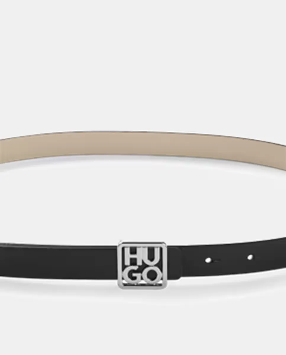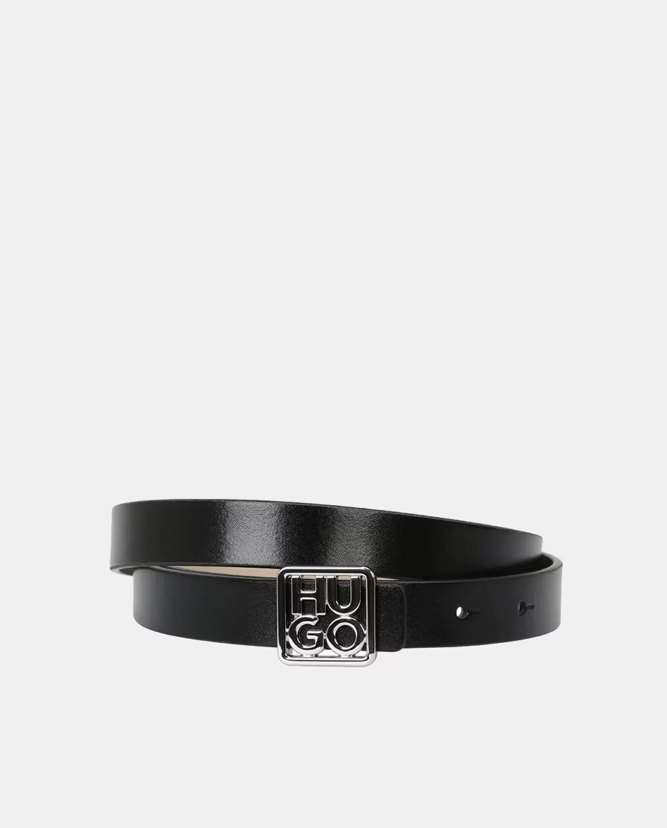 Женский ремень HUGO из гладкой кожи с логотипом, черный