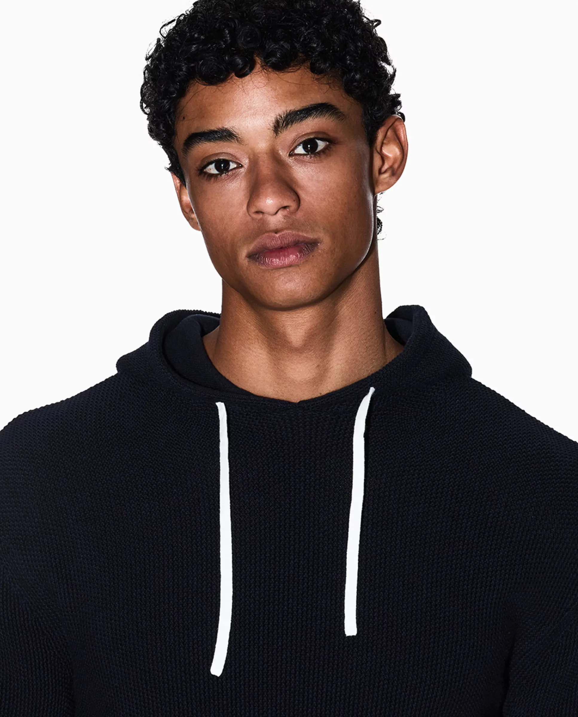 Джемпер из структурного трикотажа из хлопка. С капюшоном и контрастными шнурками для регулировки. Флаг с логотипом на спине.
