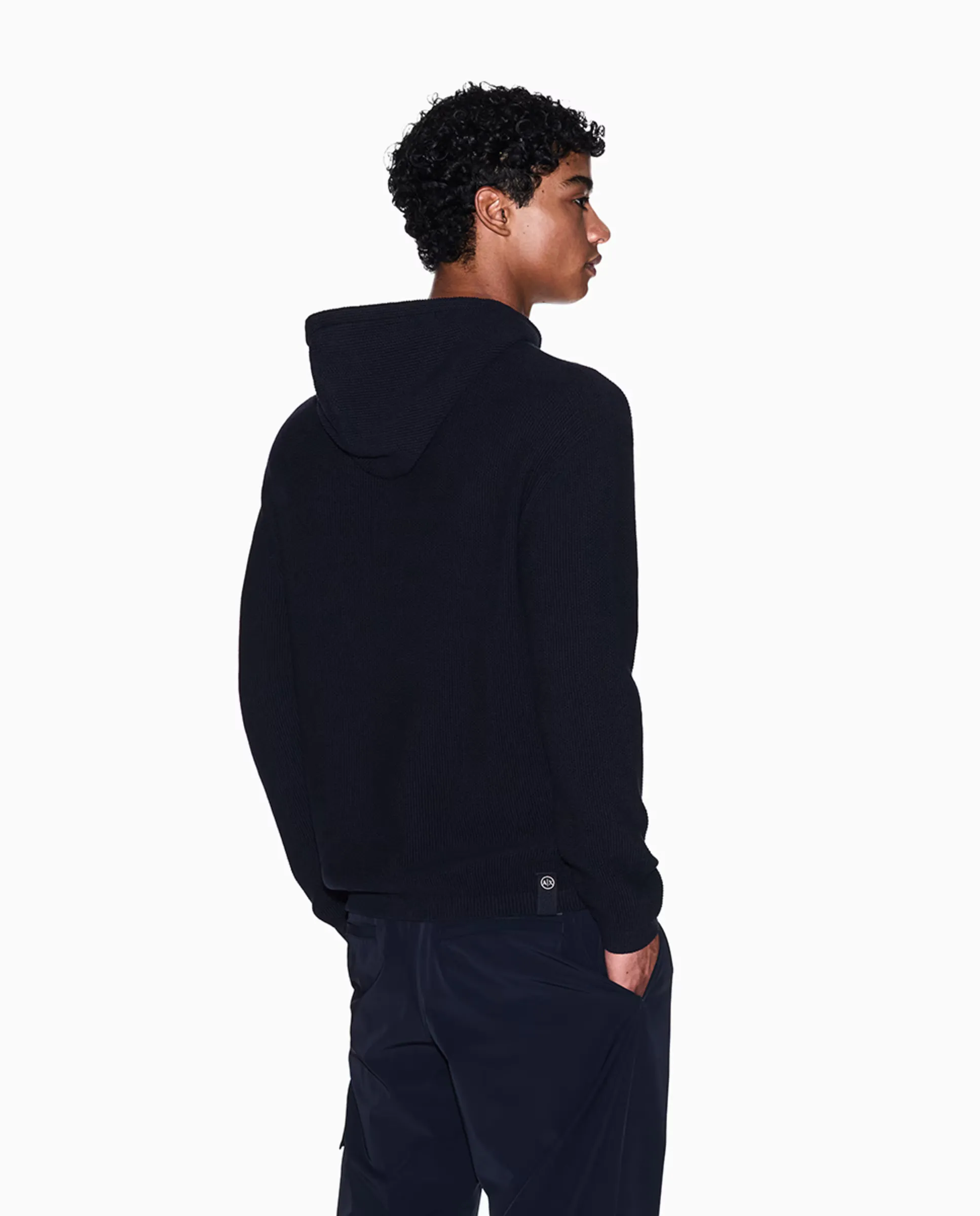 Мужской хлопковый свитер с капюшоном Armani Exchange, темно-синий