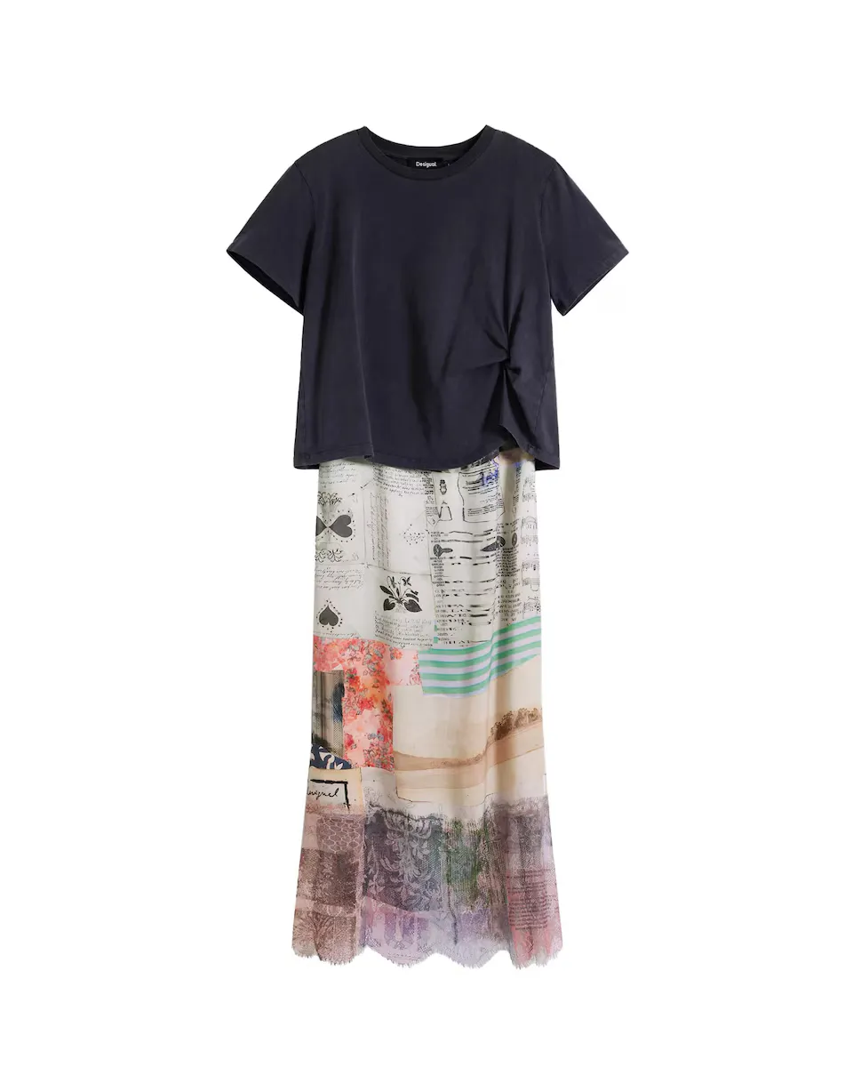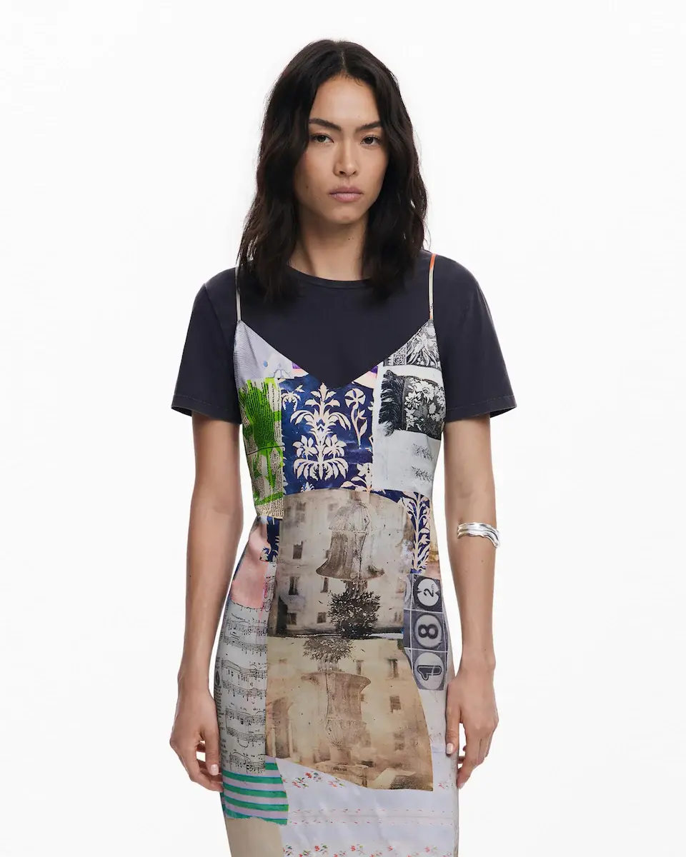 Платье типа белья с коллажным принтом и съемным коротким топом. Художественный принт. Покрой: обычный. На бретельках. Длина: миди. Короткий топ с короткими рукавами и круглым вырезом, с сборкой. Покупая хлопковые изделия Desigual, вы поддерживаете наши инвестиции в Better Cotton. Этот продукт получается с помощью системы массового баланса и может не содержать Better Cotton. bettercotton.org/massbalance..