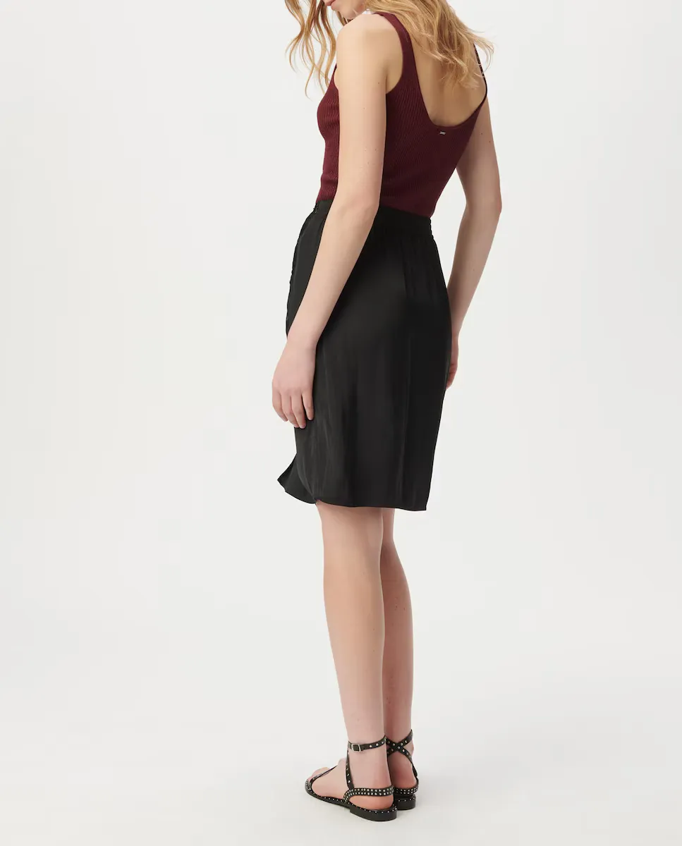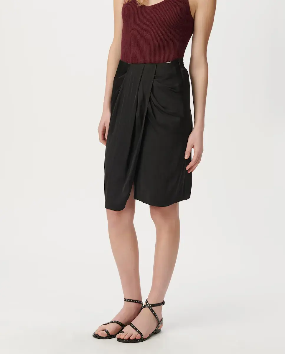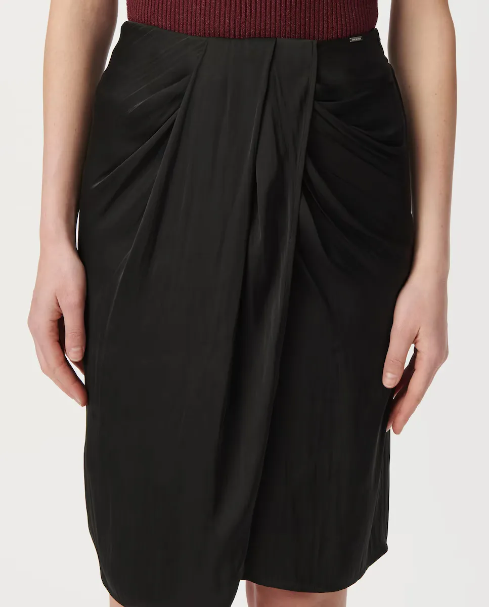 Чёрная юбка для женщин из японского полиэстера, форма сумки с драпировкой в стиле парео спереди, эластичная талия сзади, прямой крой, длина до колена. IKKS actforbetter: материал содержит 100% переработанный полиэстер.