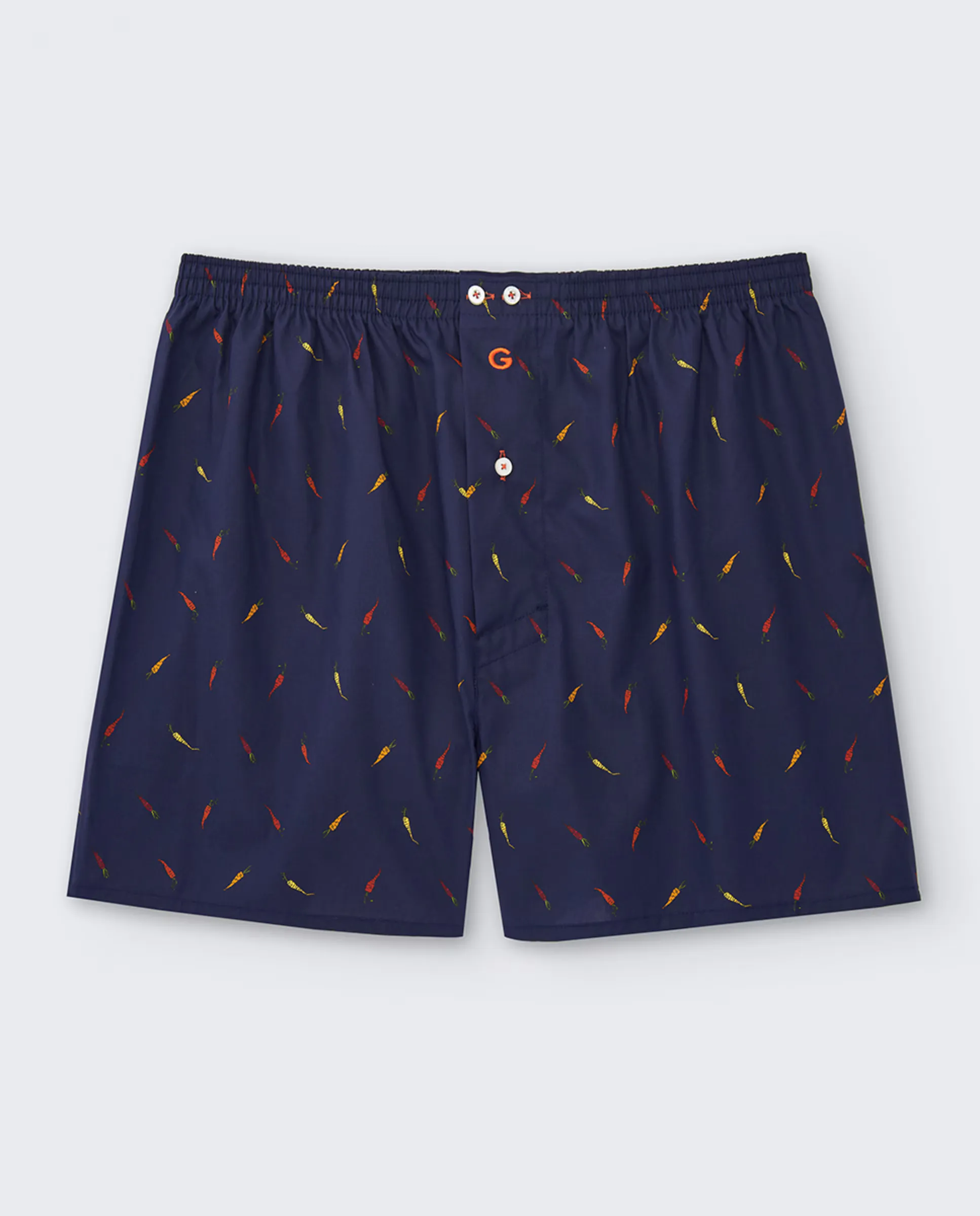 Тканевые боксеры с отверстием и пуговицей, с обтянутым эластичным поясом, 3 пуговицы и вышитый логотип.