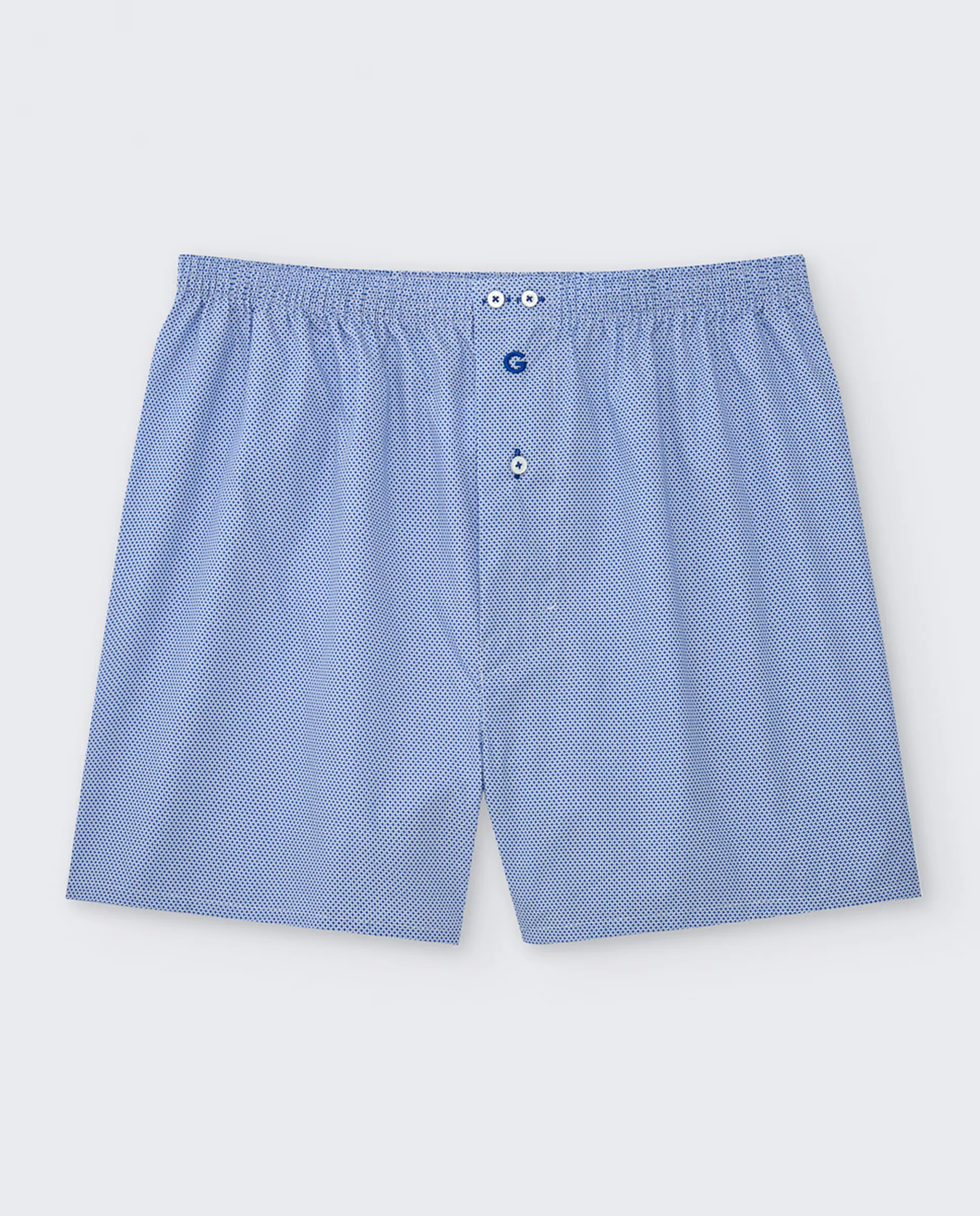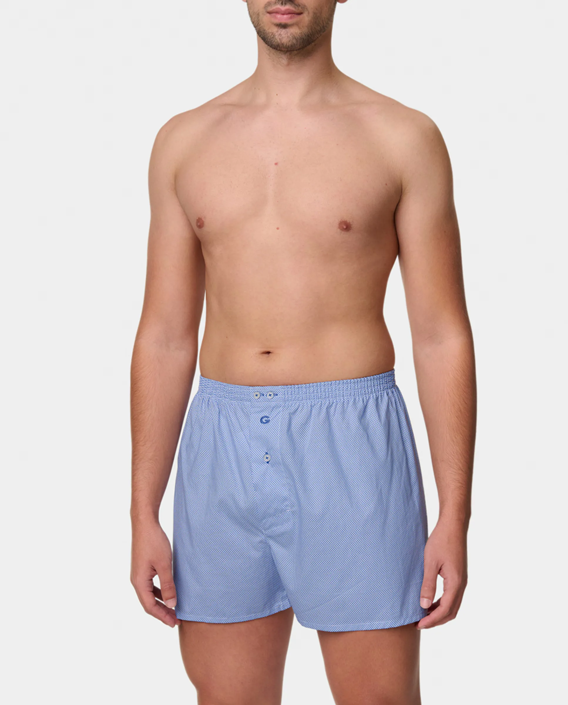 Тканевые боксеры с отверстием и пуговицей, с обтянутым эластичным поясом, 3 пуговицы и вышитый логотип.