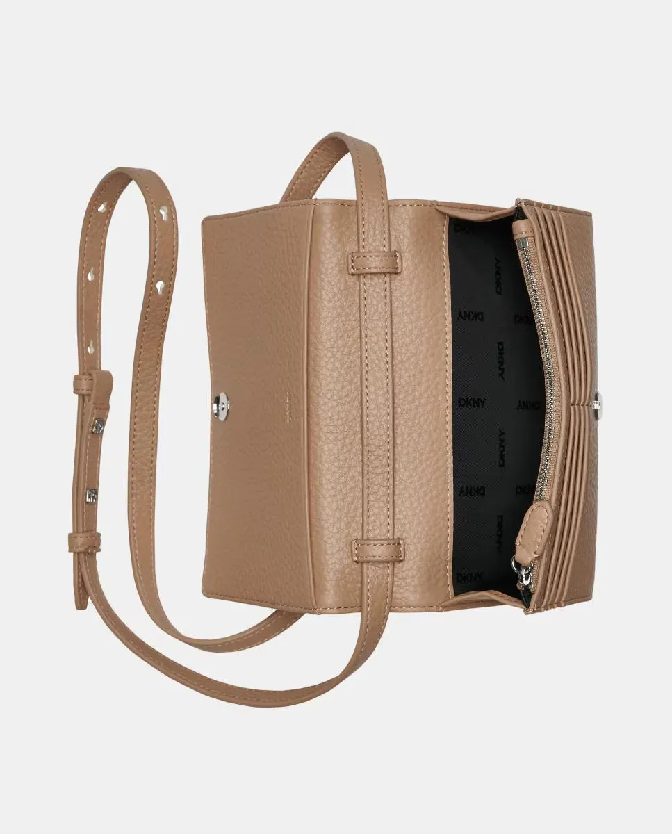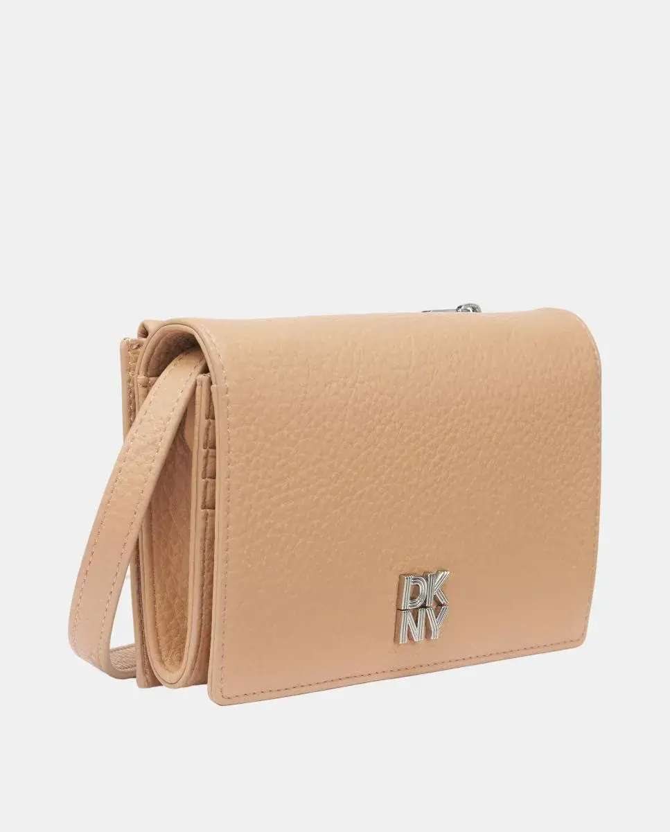 Сумка-клатч ETTA с перекрестной ручкой, клапаном с магнитной застежкой и логотипом DKNY из металла на передней части. Карман с застежкой-молнией на задней стороне.