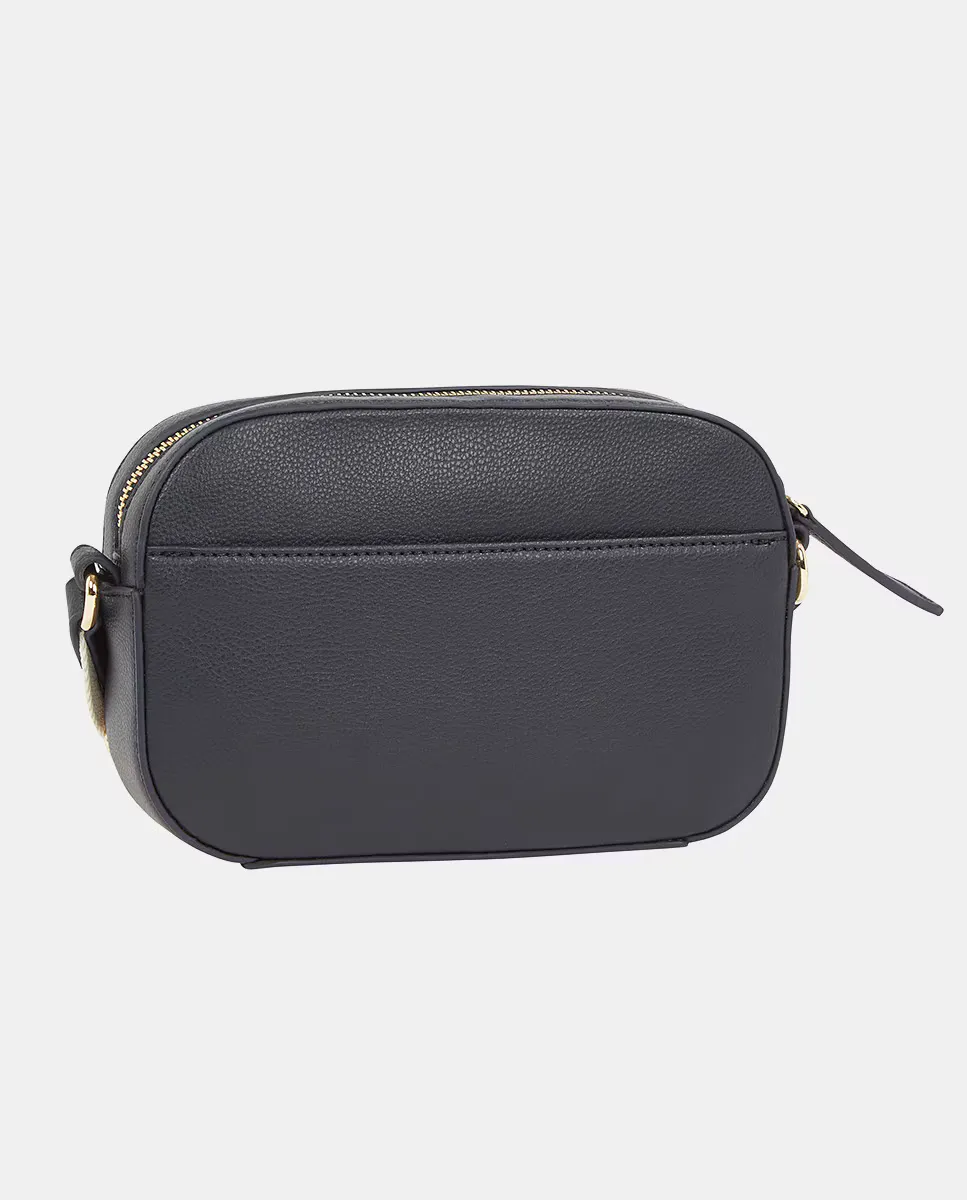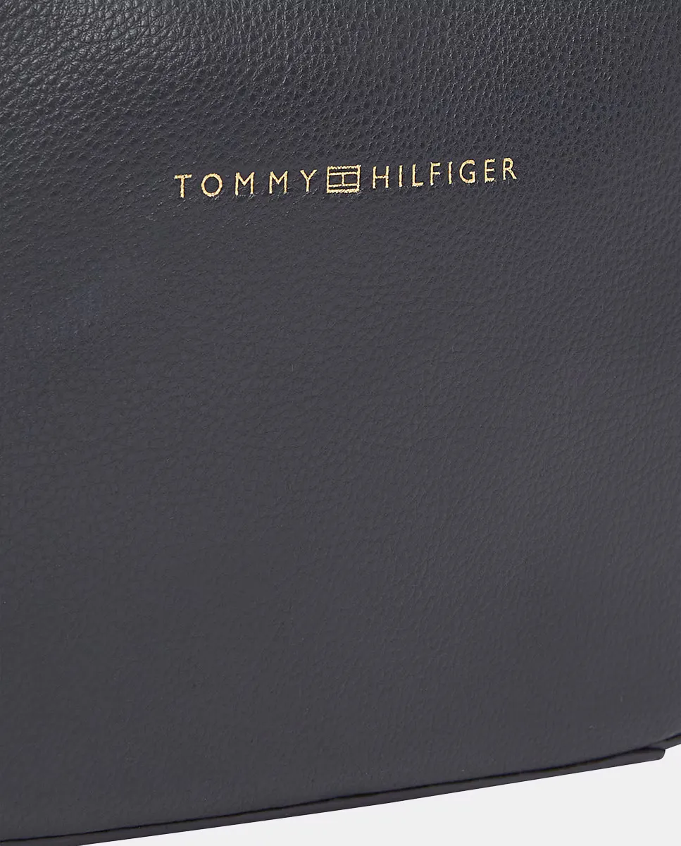 Женская сумка через плечо, изготовленная из экокожи темно-синего цвета. Дизайн с регулируемой ручкой и застежкой на молнии. Деталь с логотипом Tommy Hilfiger на передней части.