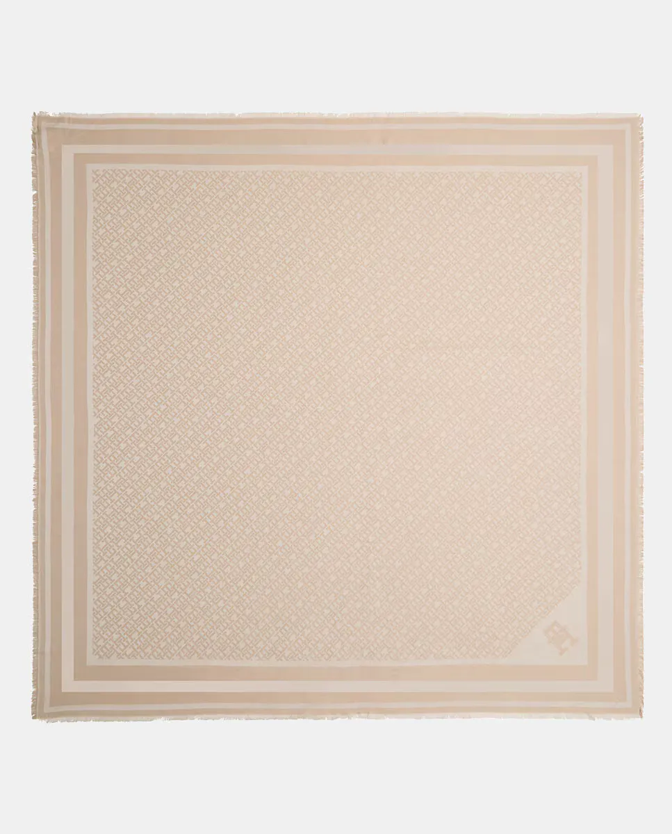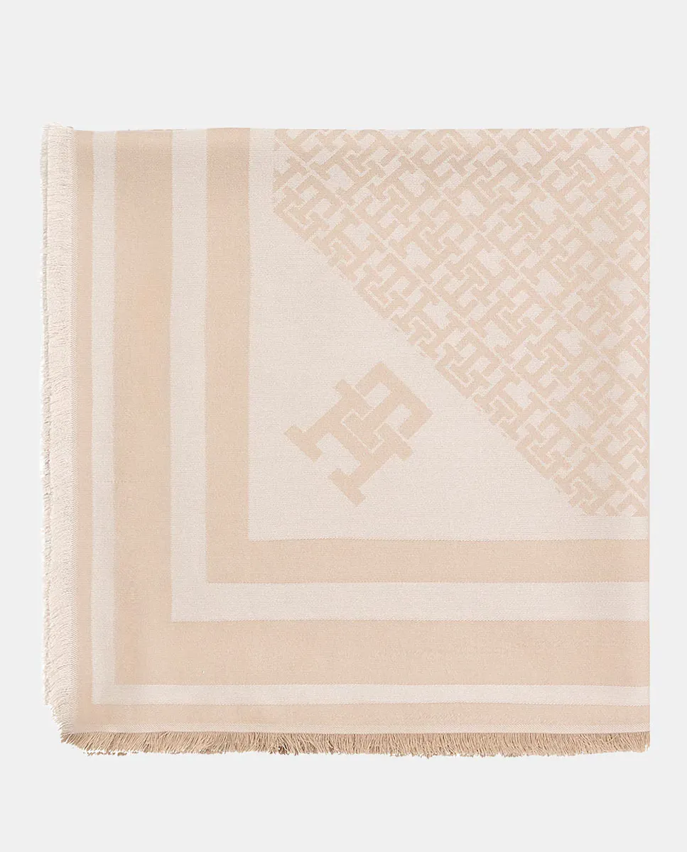 Женский платок, изготовленный из модала бежевого цвета. Дизайн с монограммой Tommy Hilfiger.