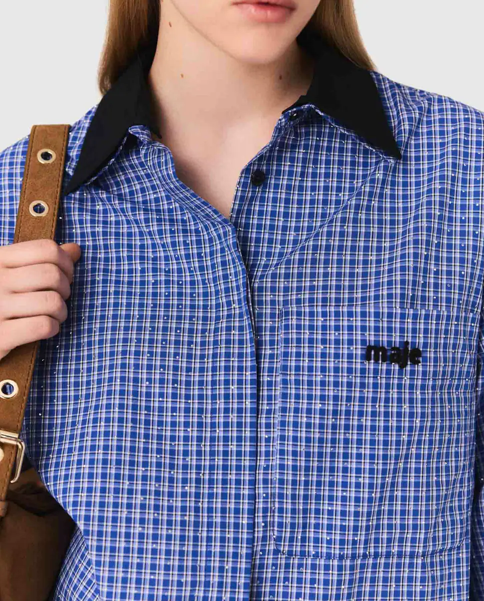 Короткая рубашка в клетку, украшенная стразами. Двойной воротник, один из которых контрастный и съемный. Длинные рукава с застежками на пуговицах, застежка на пуговицах с накладной планкой. Накладной карман на груди с вышивкой Maje. Maje приглашает нас отпраздновать возвращение с коллекцией, которая сочетает современность и элегантность. Вдохновленная городскими силуэтами и динамикой города, каждая деталь разработана для того, чтобы адаптироваться к переходу от лета к осени, с легким касанием свежести и характера. Эта короткая рубашка в клетку, украшенная стразами, добавляет discreetное сияние вашему ежедневному образу. Ее съемный двойной воротник, один из которых контрастный, позволяет варьировать стили по вашему желанию. Длинные рукава с застежками на пуговицах и застежка на пуговицах с накладной планкой придают элегантный и вне времени вид. Накладной карман на груди, украшенный вышивкой Maje, добавляет уникальную и изысканную деталь этому универсальному изделию. Носите ее с миди-юбкой для образа в стиле преппи и дополните с фирменными аксессуарами, чтобы завершить наряд.