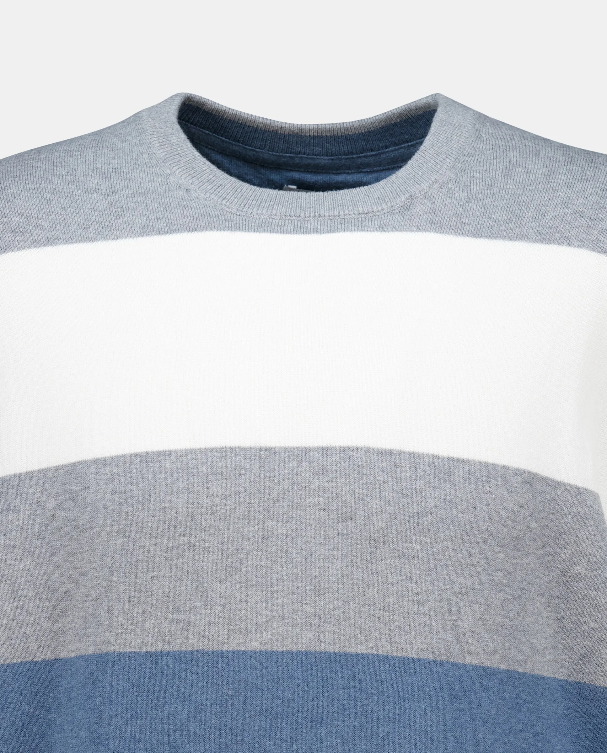 Мужской свитер, тонкой вязки, из хлопка / нейлона. Имеет круглый вырез и широкий полосатый дизайн в меланжевых цветах.
