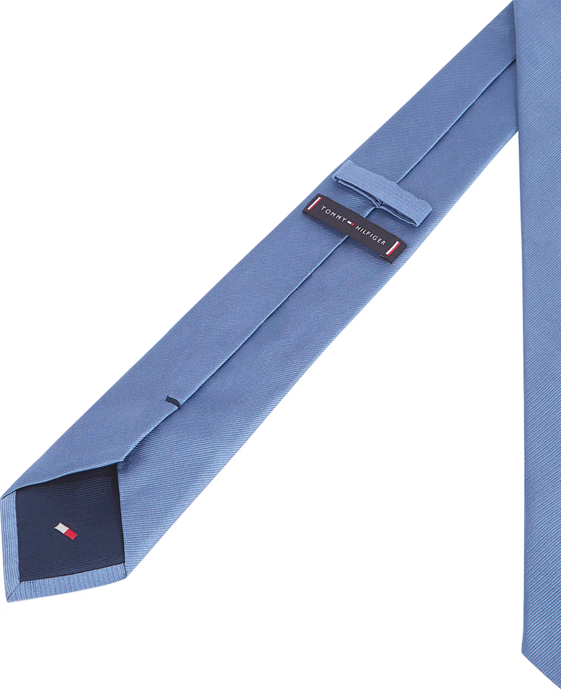 Однотонный мужской галстук из шелка синего цвета от Tommy Hilfiger.
