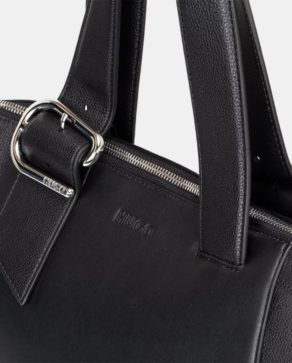 Экокожаная сумка-шоппер с двумя ручками Hugo, черный