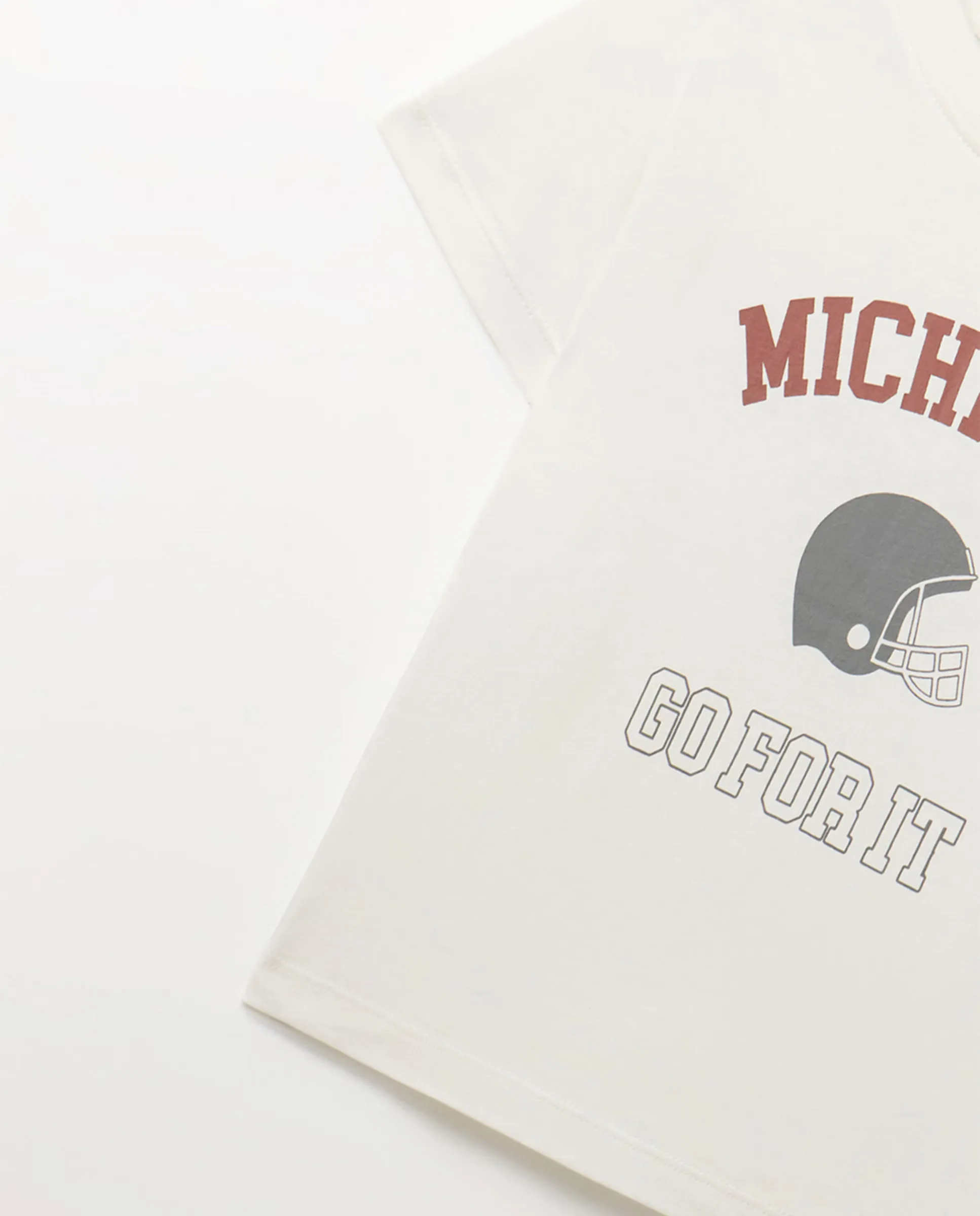 Базовая футболка с коротким рукавом и круглым вырезом. Принт спереди. 100% хлопок