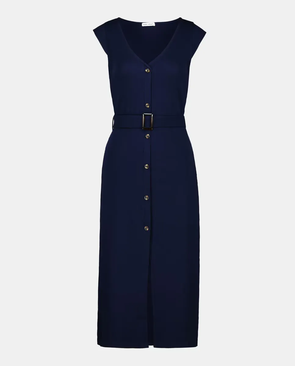 Миди-платье без рукавов с рубчиком Easy Wear, темно-синий