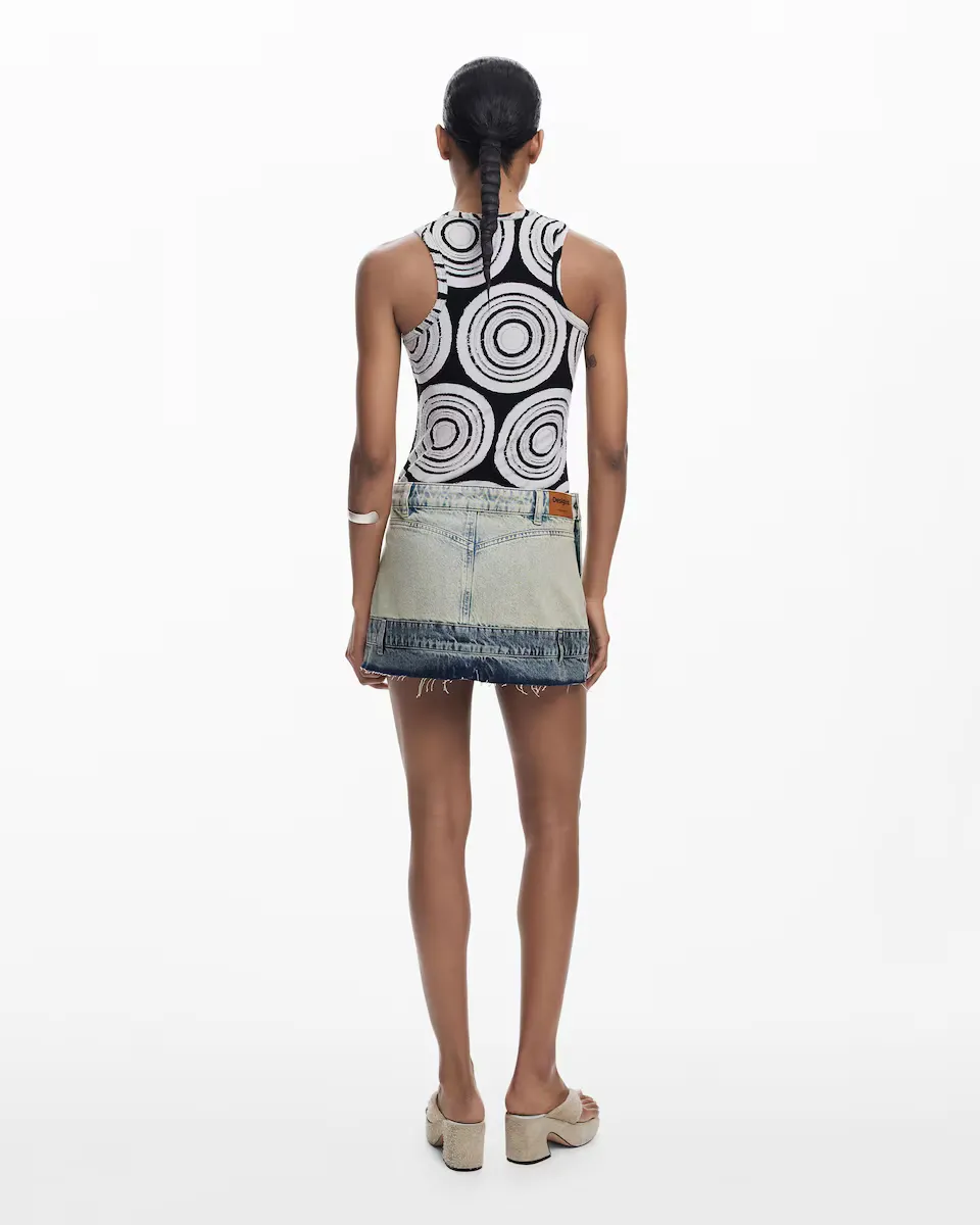 Мини-юбка с верхним дизайном, вдохновленным боковыми джинсами, с кнопкой на верхней части и декоративным поясом внизу. Цвет: многоцветный. Крой: обычный. Отстираный деним. Длина: мини. Задние и передние карманы. Застежка: на кнопке и молнии. Сочетание цветов. Дизайн в Барселоне. Хлопок BCI.