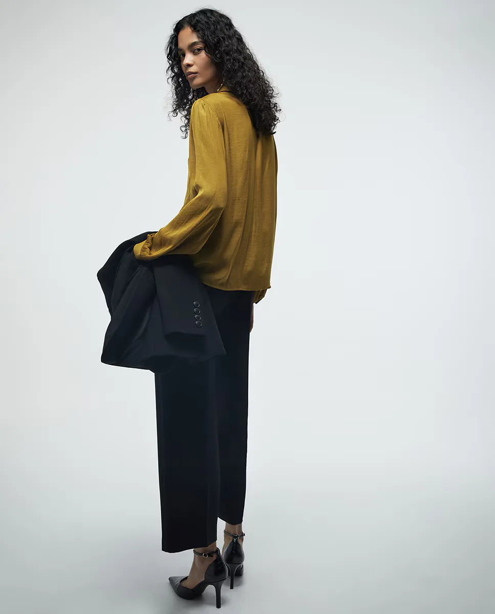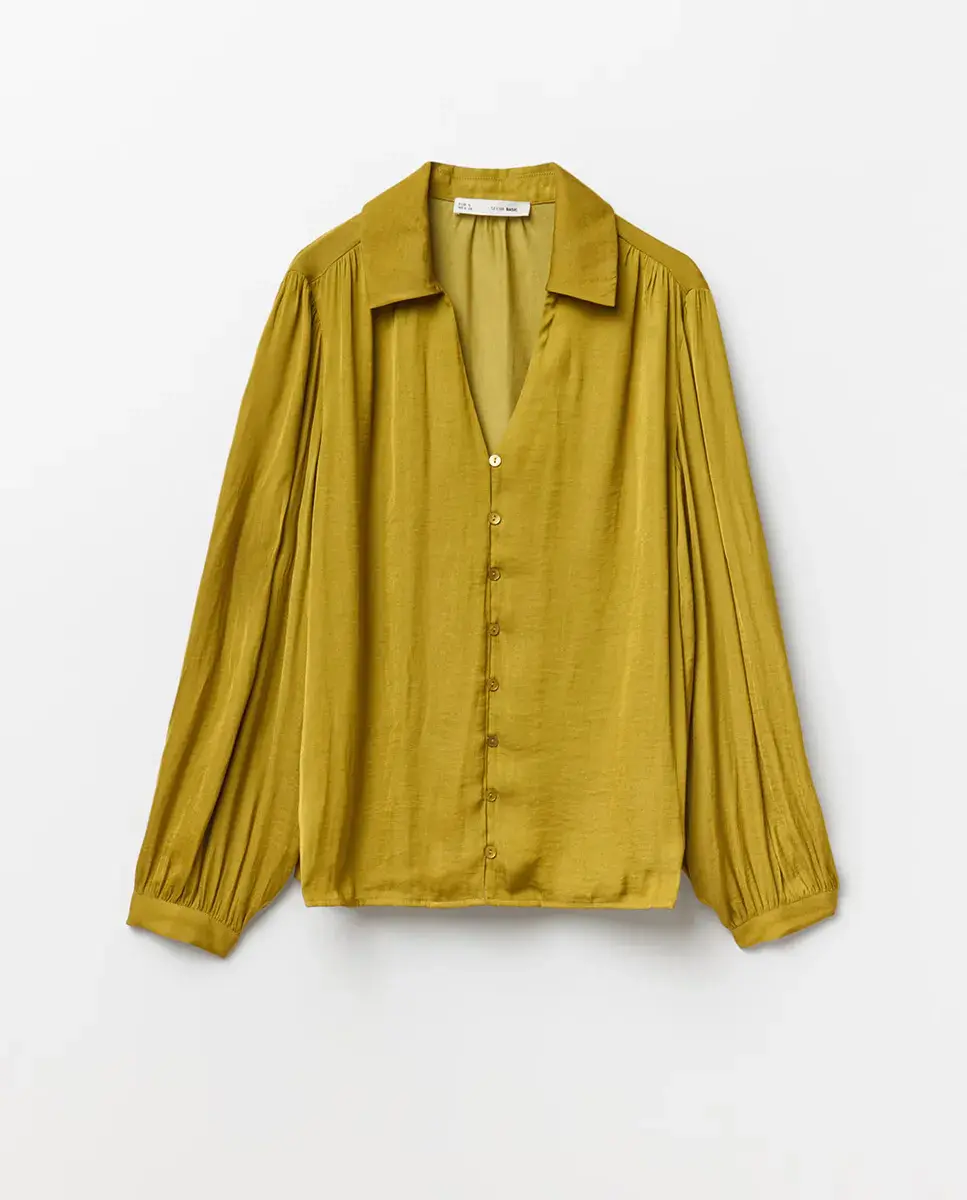 Однотонная струящаяся блузка с воротником-рубашкой и застежкой на пуговицы