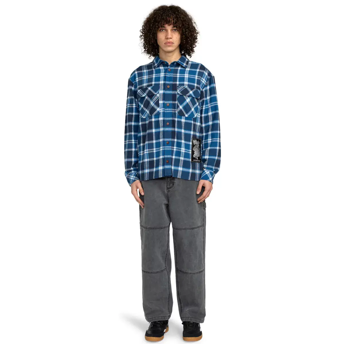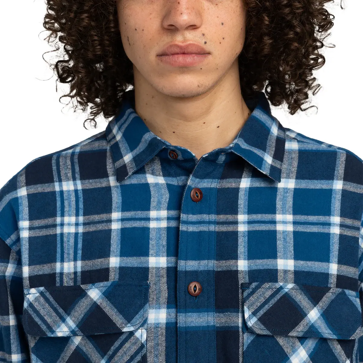 Рубашка с длинными рукавами для мужчин. Особенности включают: Коллекция: Element x Nature Calls, Ткань: ткань 60% органического хлопка и 40% органического хлопка в клетку, окрашенного в нить [195 г/м2], Соответствие требованиям природы: органический хлопок GOTS, Крой: свободный, Воротник: воротник типа рубашки, Рукава: длинные рукава, Карманы: накладные карманы на груди с застежкой на липучке, Застежка: застежка с откидным клапаном и пуговицами, Бренд: текстильная этикетка в нижнем левом углу, Прямоугольная этикетка на боковом шве и Другие особенности: прямой подол.