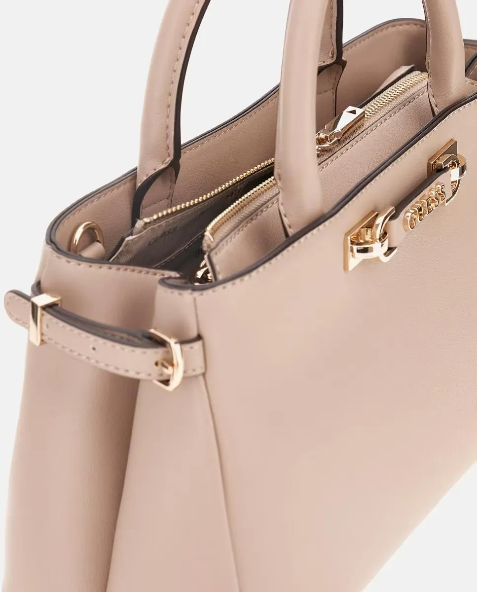 Сумка для рук модели Лефия с застежкой молнией, металлический логотип Guess на передней стороне золотого цвета и внешний задний карман на молнии.