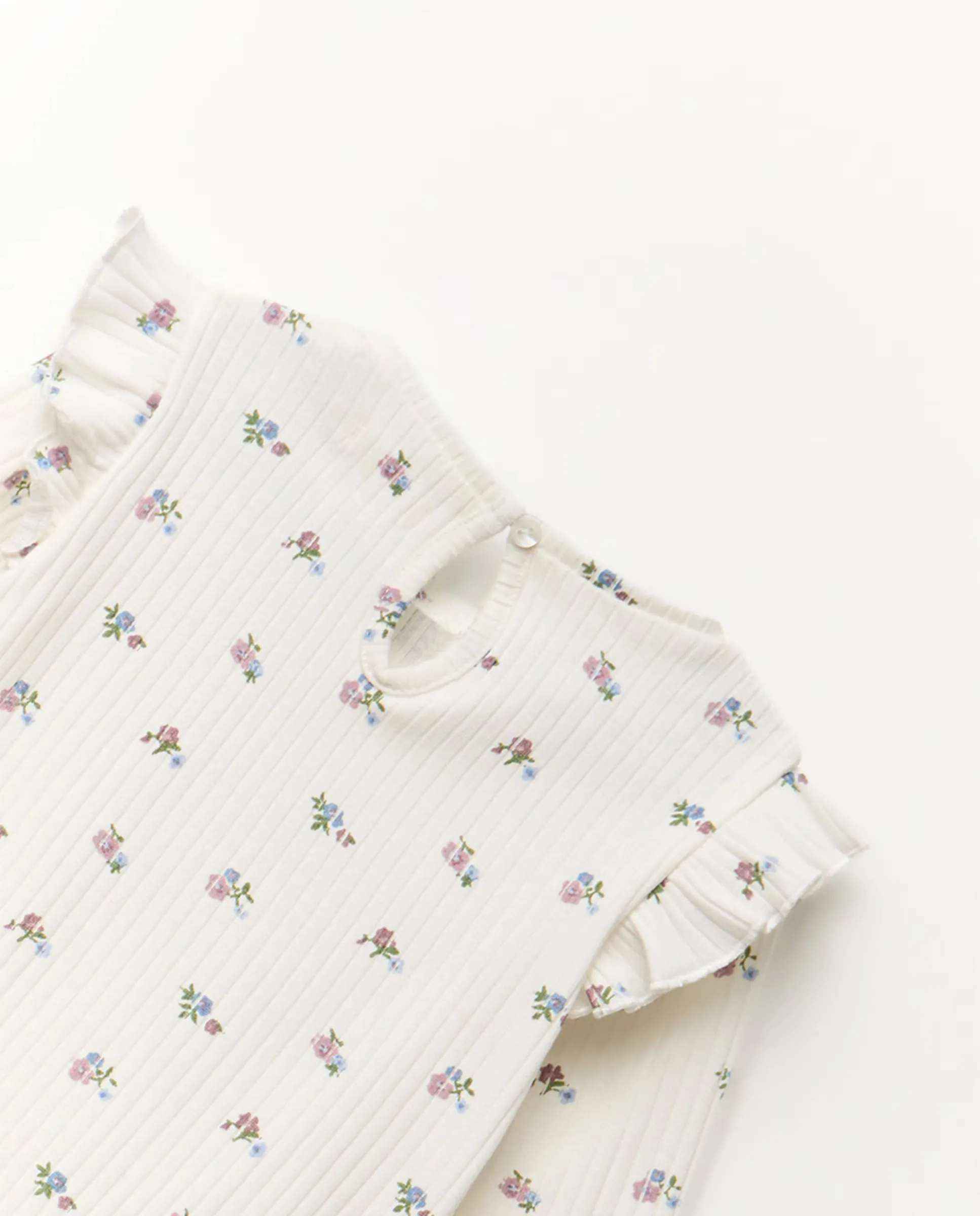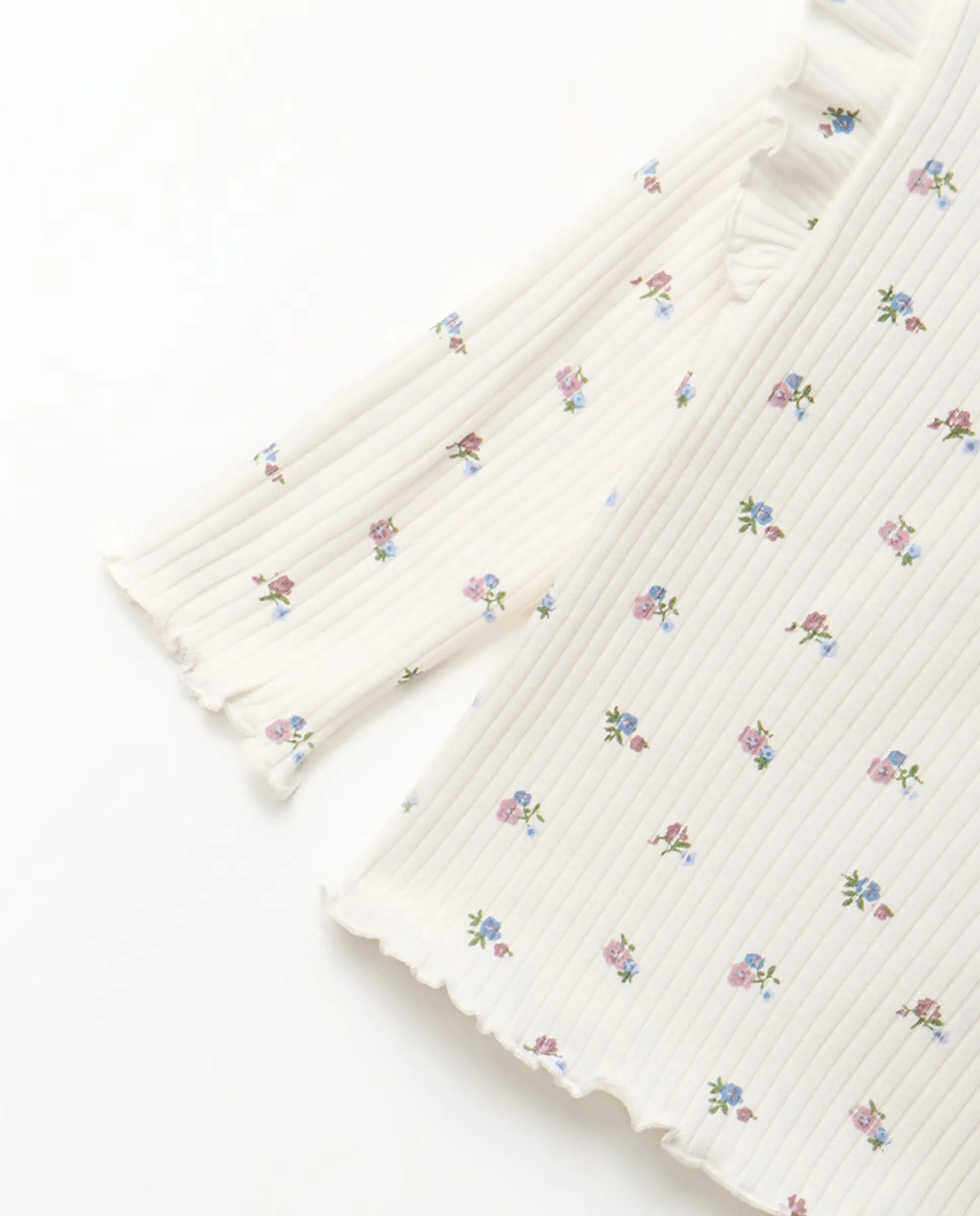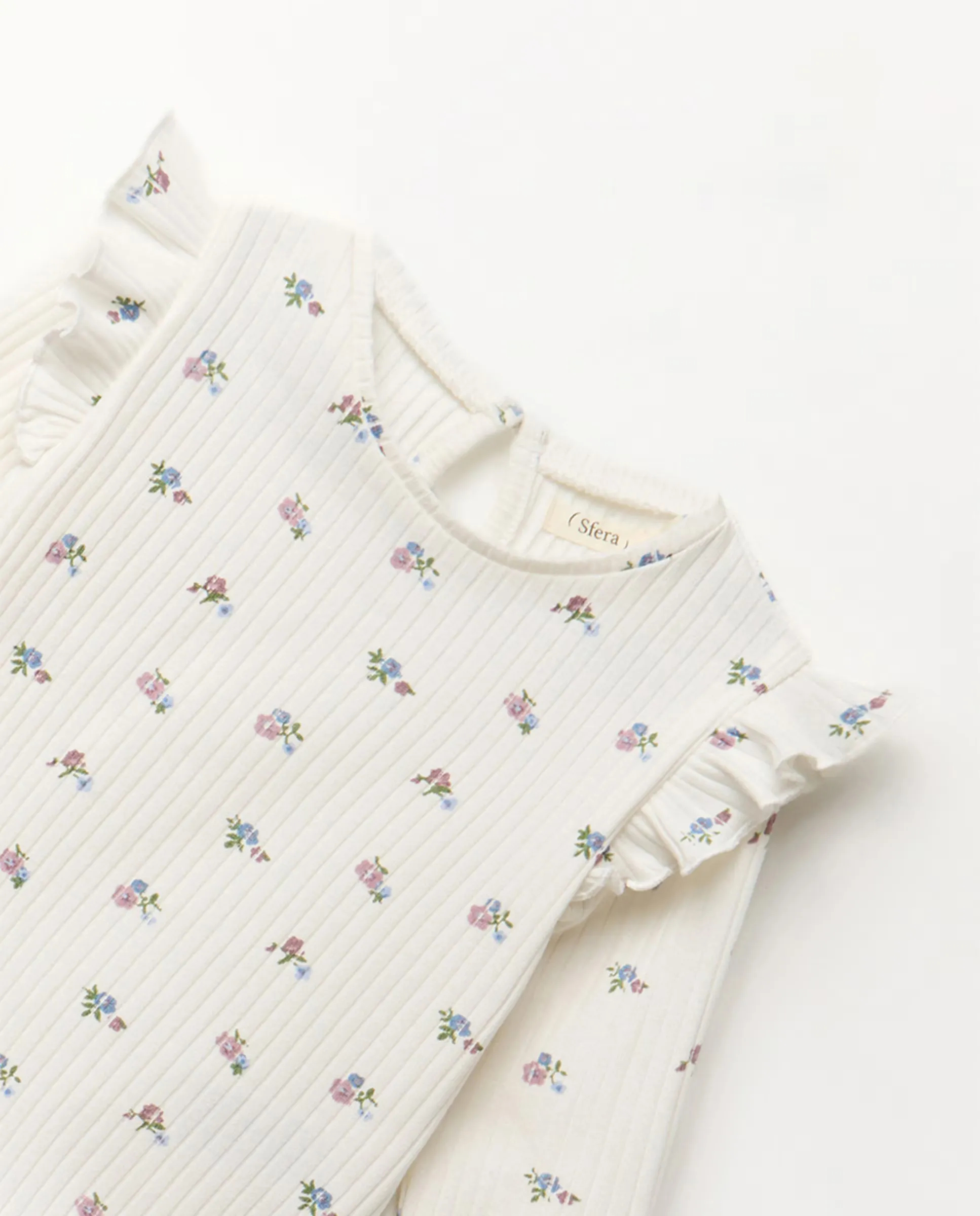Футболка с круглым вырезом и длинными рукавами с цветочным принтом. Застежка на пуговицу сзади. 100% хлопок.