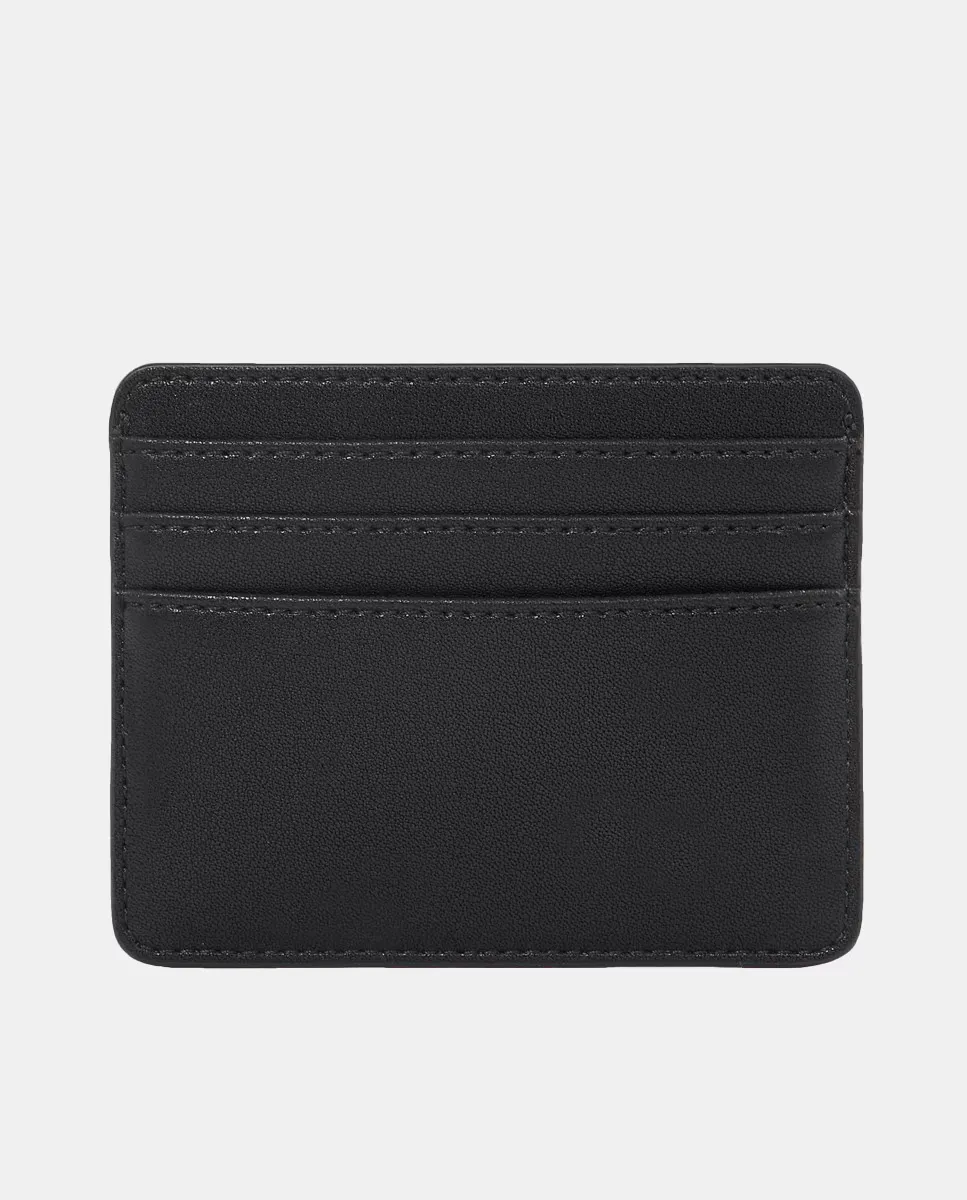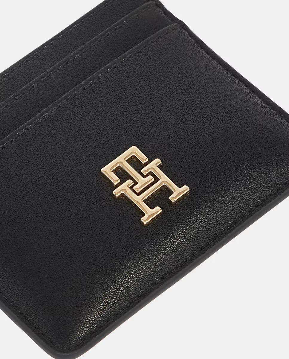 Женский кошелек из экокожи черного цвета. Дизайн с несколькими слотами для карт и металлический логотип Tommy Hilfiger на передней стороне.