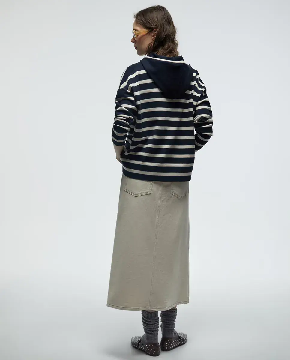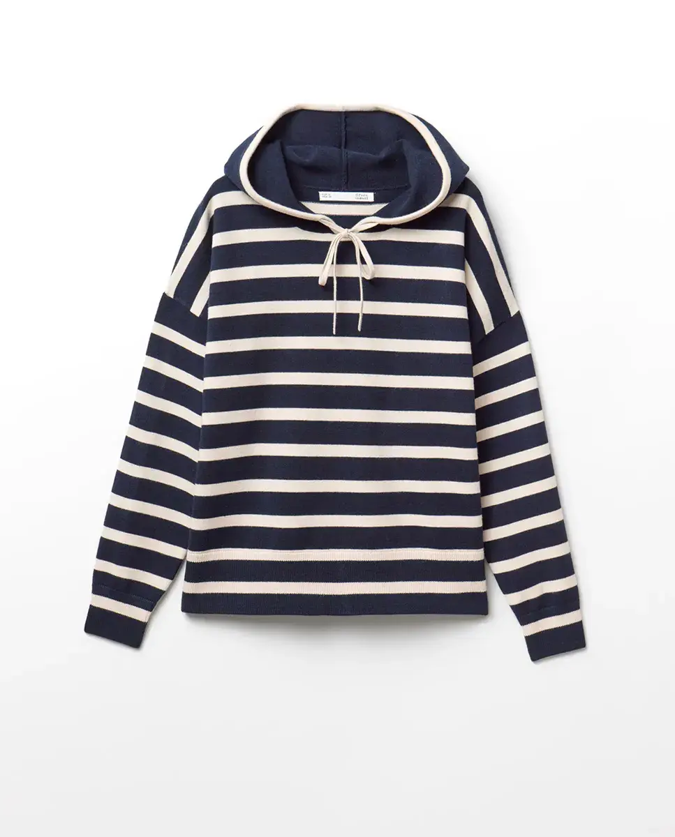 Пуловер в полоску с регулируемым капюшоном и шнурком
