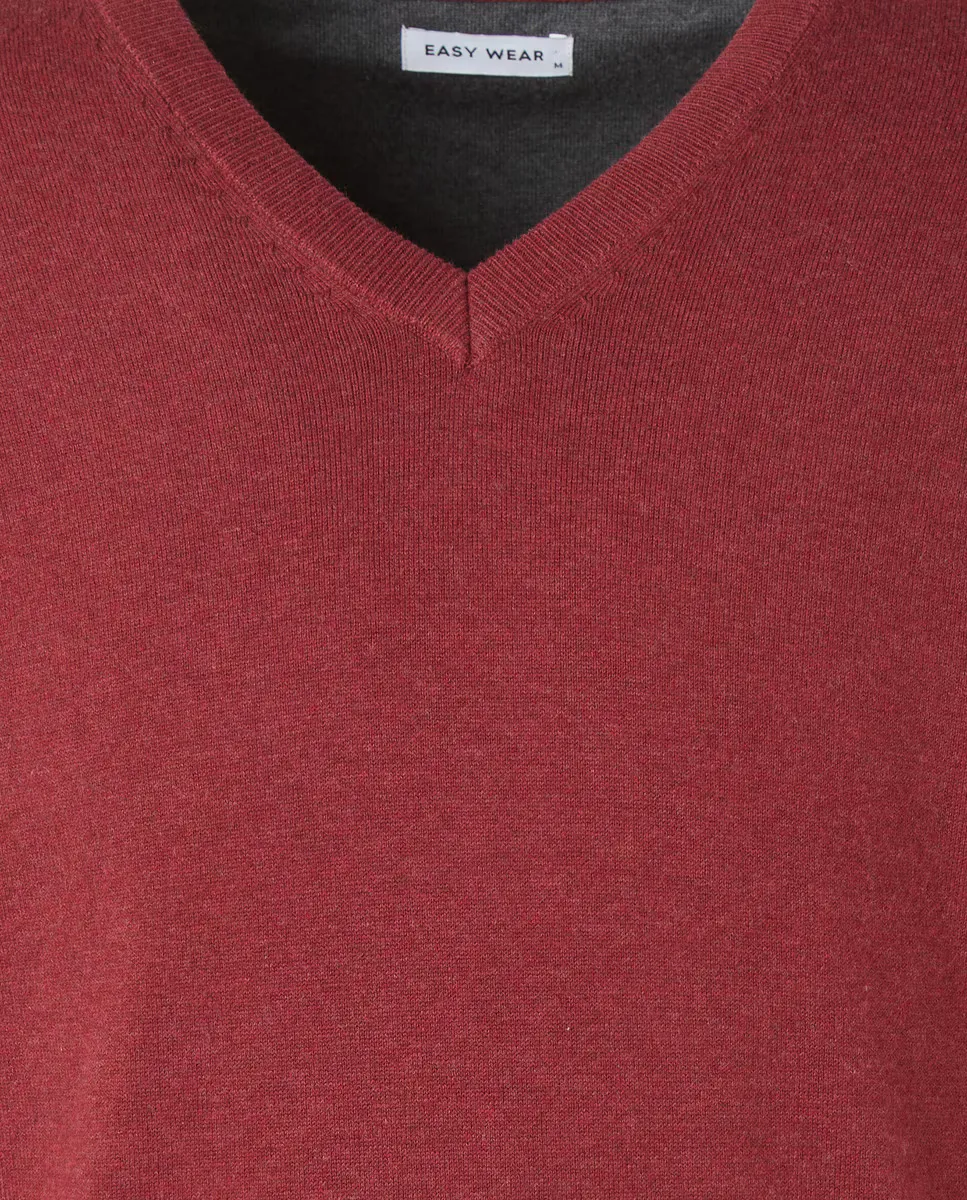 Мужской базовый свитер с тонкой вязкой, из хлопка / нейлона. Имеет V-образный вырез, с однотонным меланжем и контрастной отделкой в области горловины.