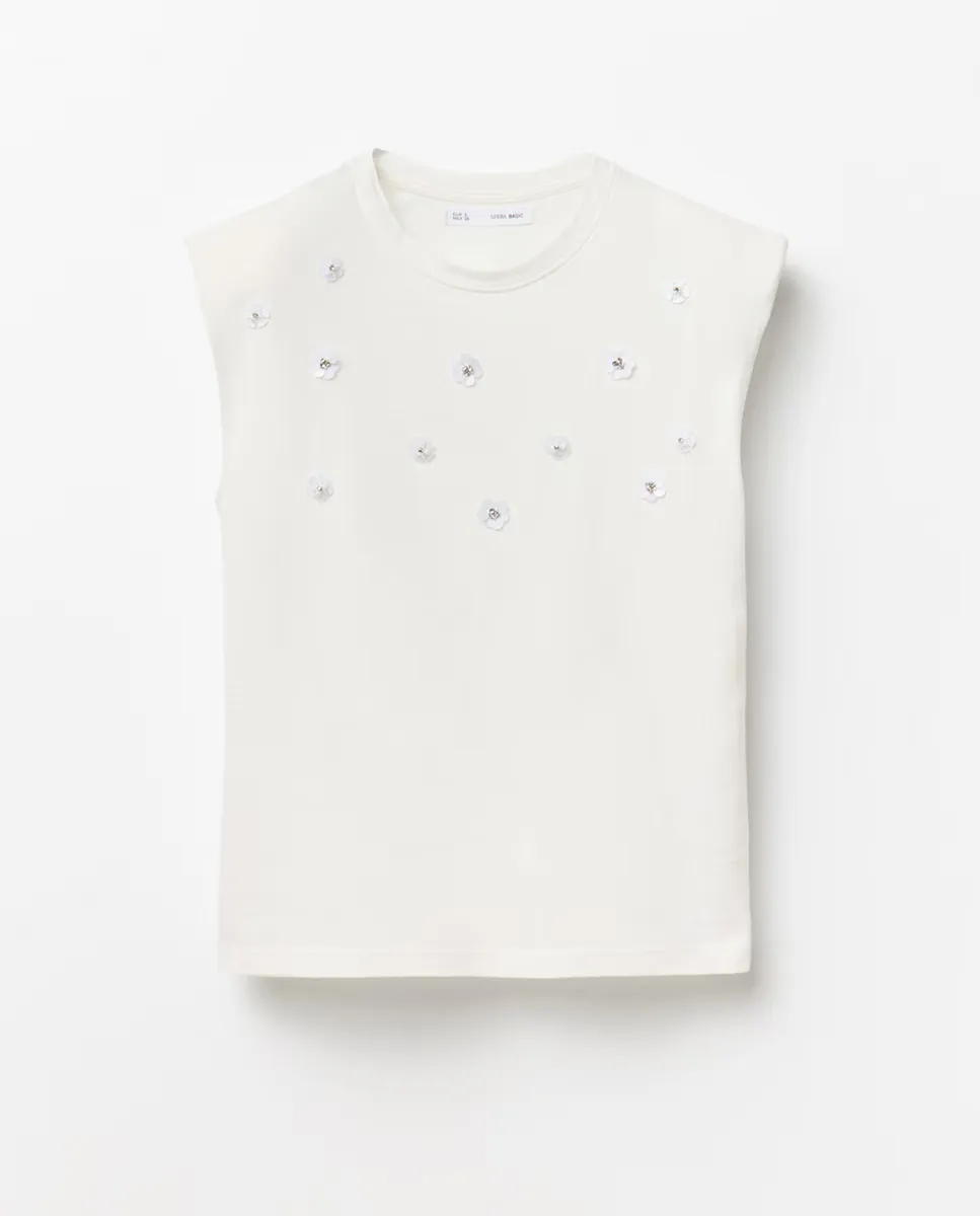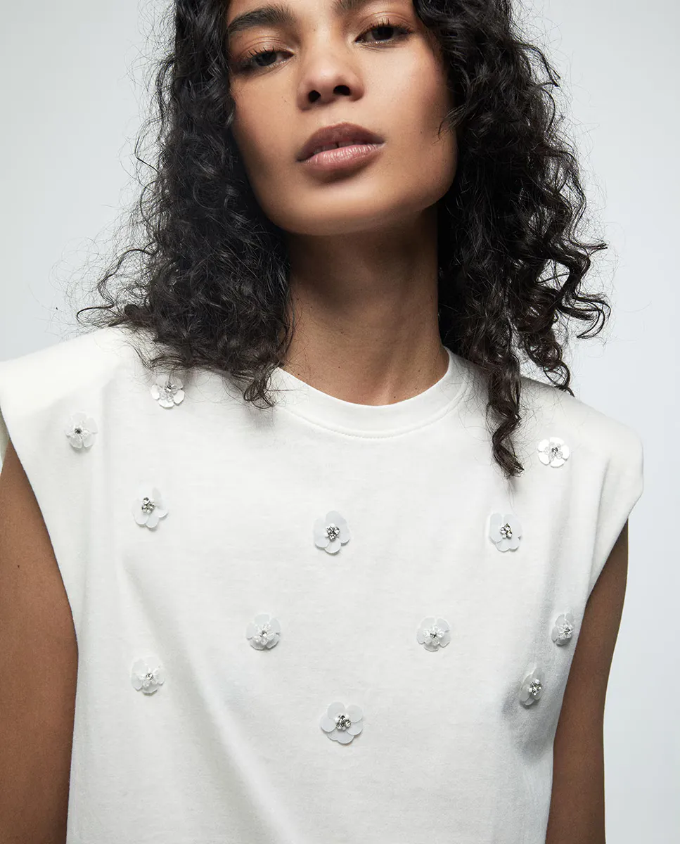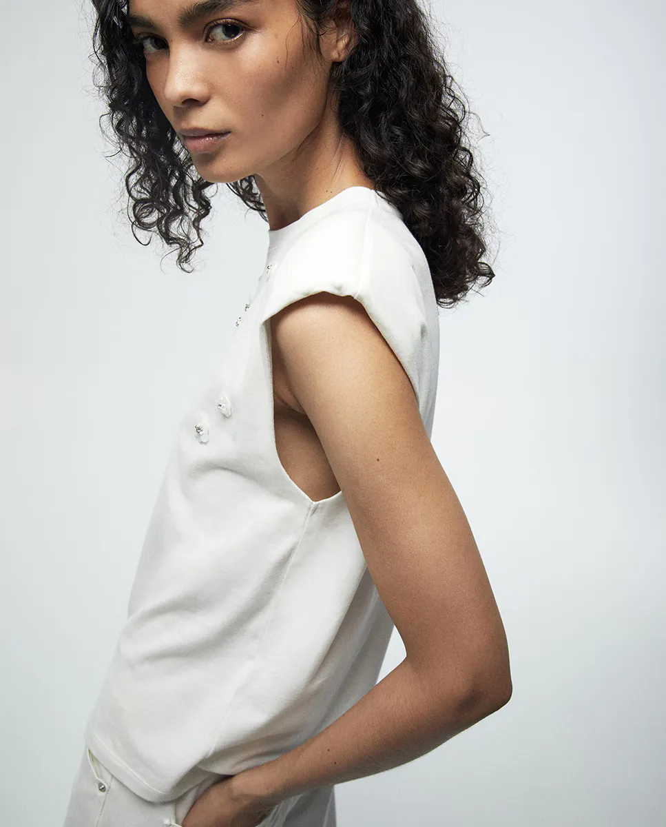 Футболка с коротким рукавом и плечевыми накладками с деталями аппликации. 100% хлопок