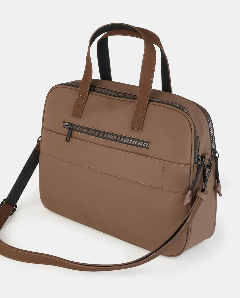 Чёрная сумка для документов на застежке-молнии, с задним карманом на молнии. Две короткие ручки и регулируемый длинный ремень.