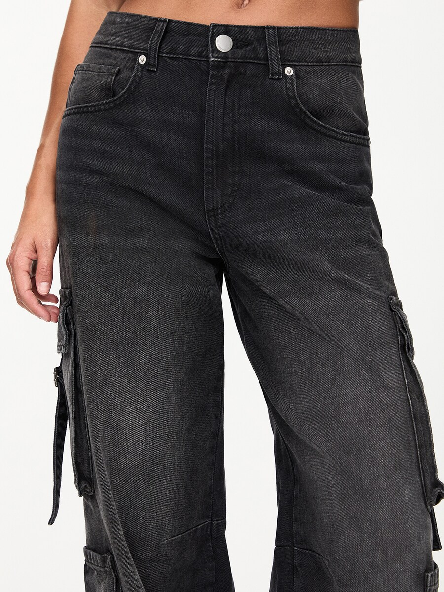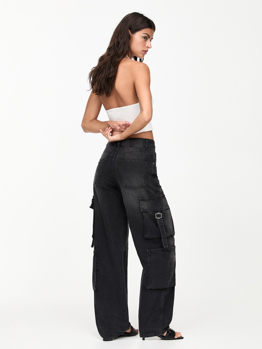Джинсы карго с широкими штанинами Pull&Bear, черный деним 4 576₽