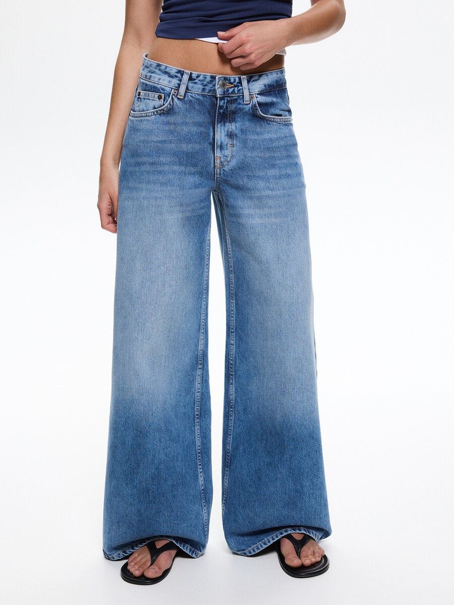 Джинсы с широкими штанинами Pull&Bear, синий деним