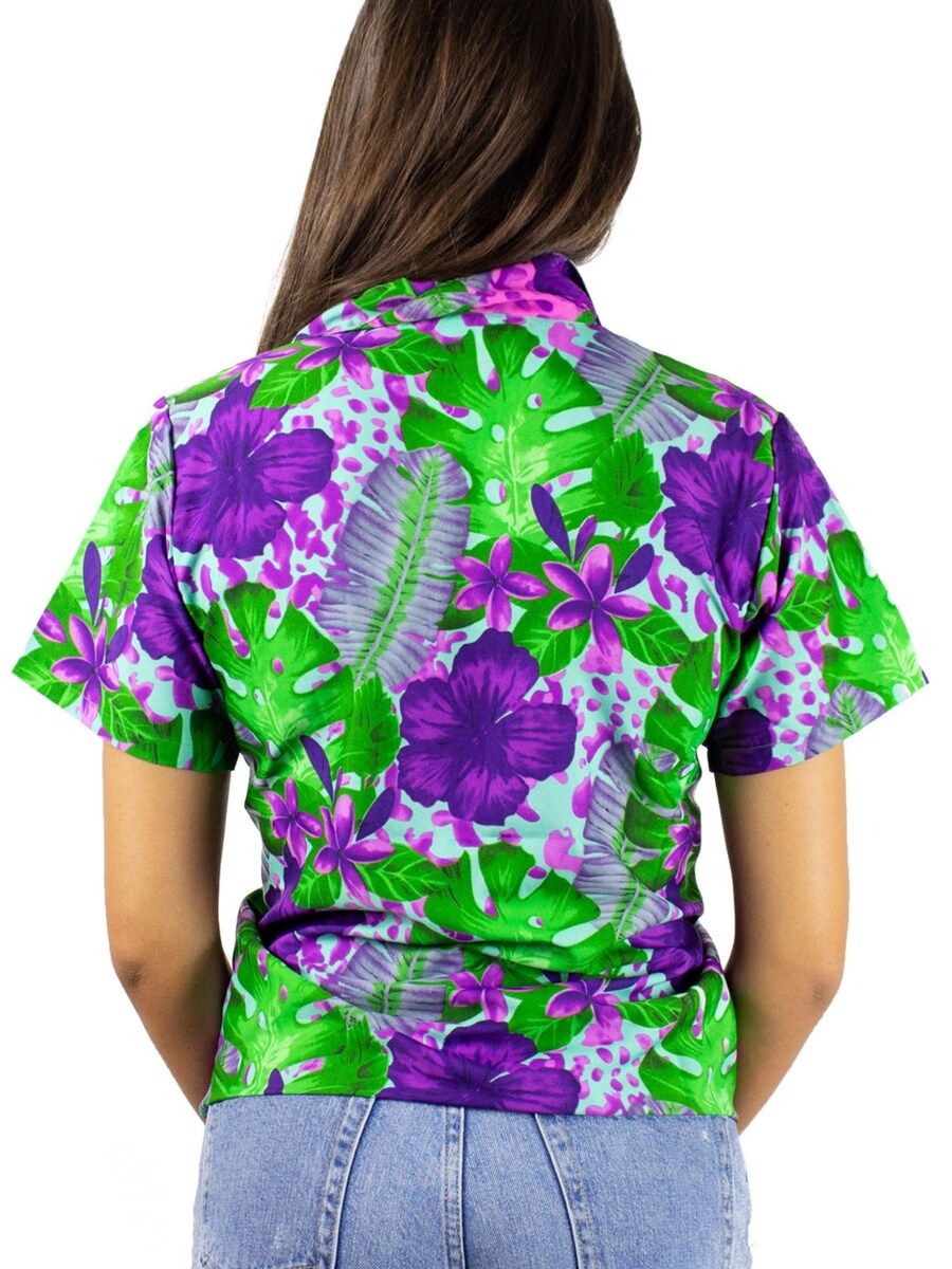 Блуза King Kameha Green Purple Flower, бирюзовый