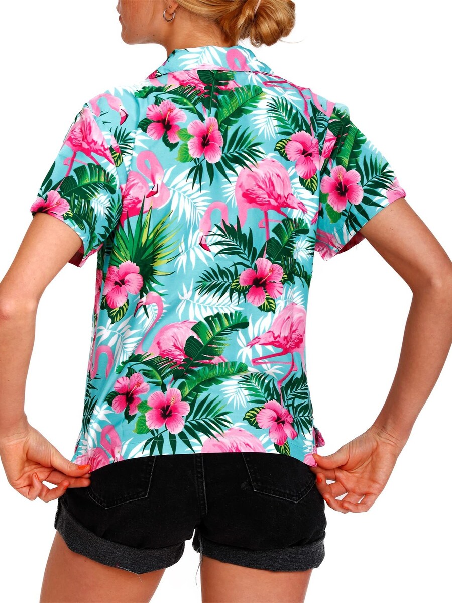 Блуза King Kameha Flamingo Flowers, бирюзовый