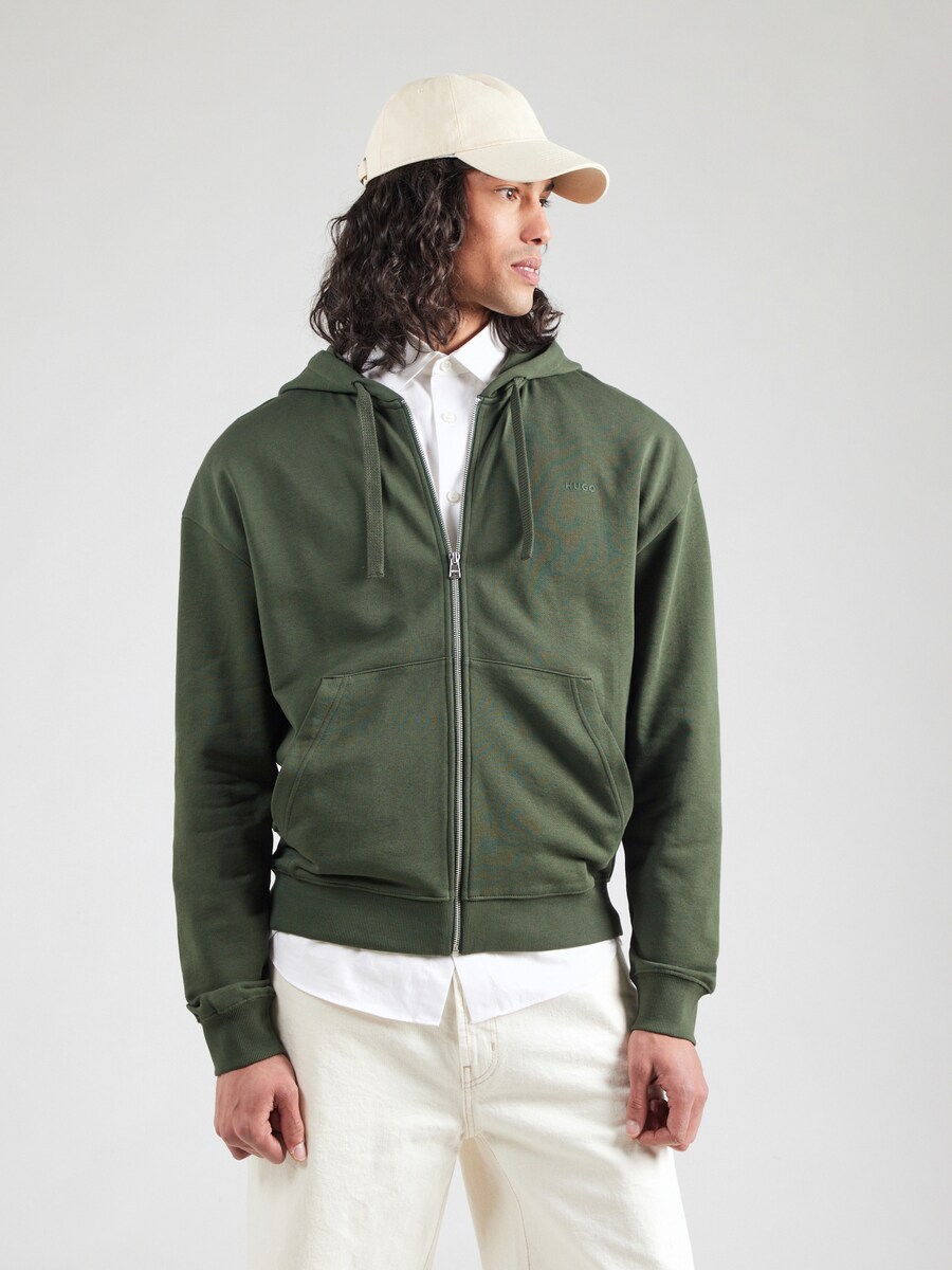 Толстовка с капюшоном на молнии HUGO Dapozip, темно-зеленый