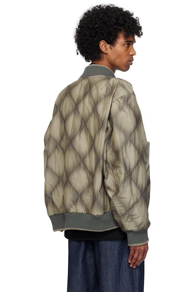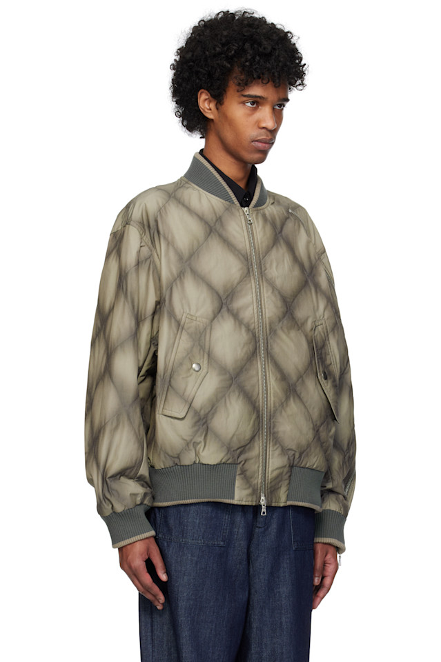 Утеплённая и стёганая куртка-бомбер из смеси полиэстера и хлопка. Градиентный рисунок напечатан по всей длине.