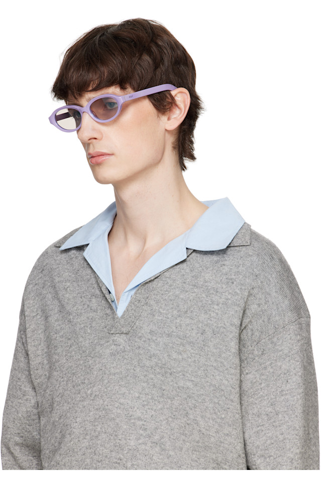 Солнцезащитные очки в овальной оправе из ацетата фиолетового цвета.