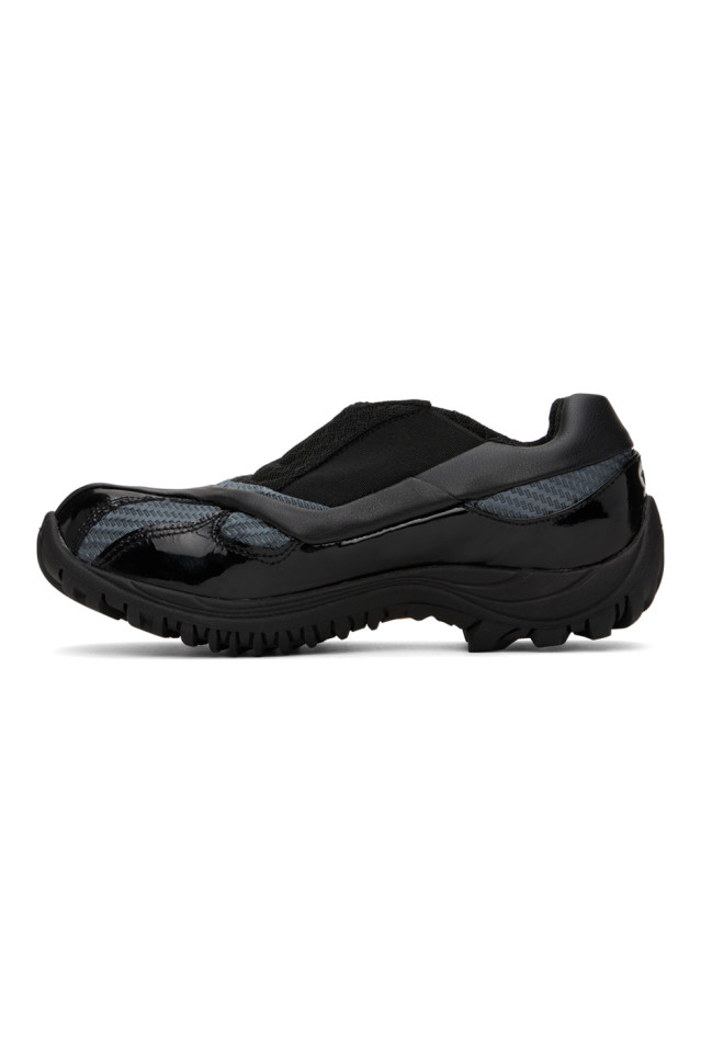Низкие кеды ручной работы из зернистой искусственной кожи, лакированной искусственной кожи и сетки, черного цвета.