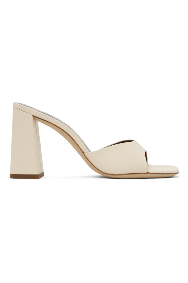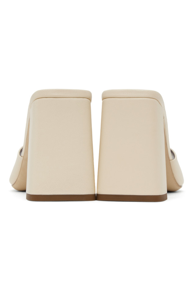 Босоножки из кожи наппа кремового цвета без застежек на каблуке.