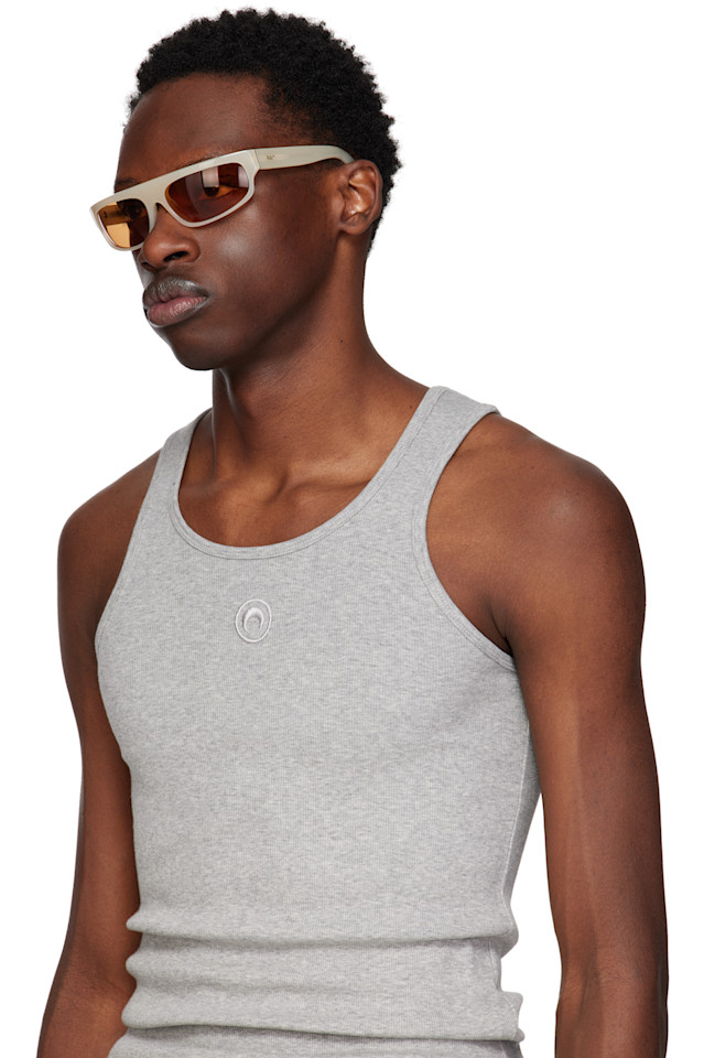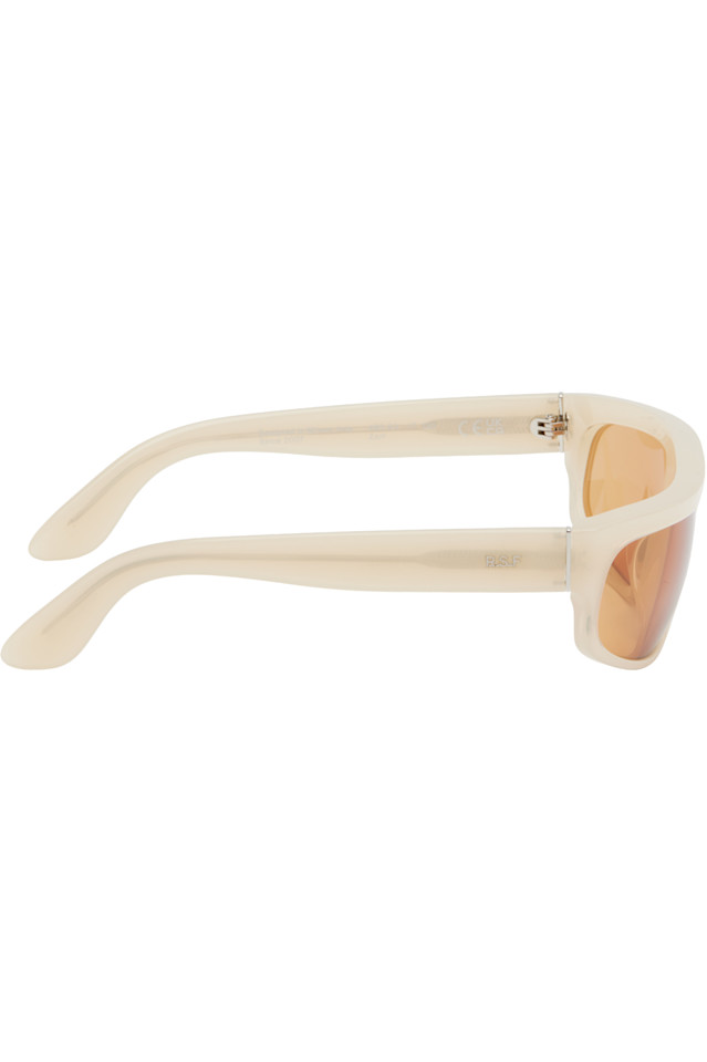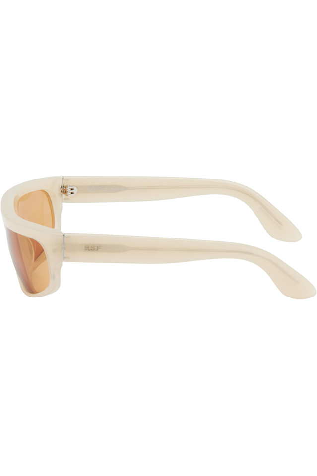 Солнцезащитные очки ручной работы в прямоугольной оправе из ацетата бежевого цвета.