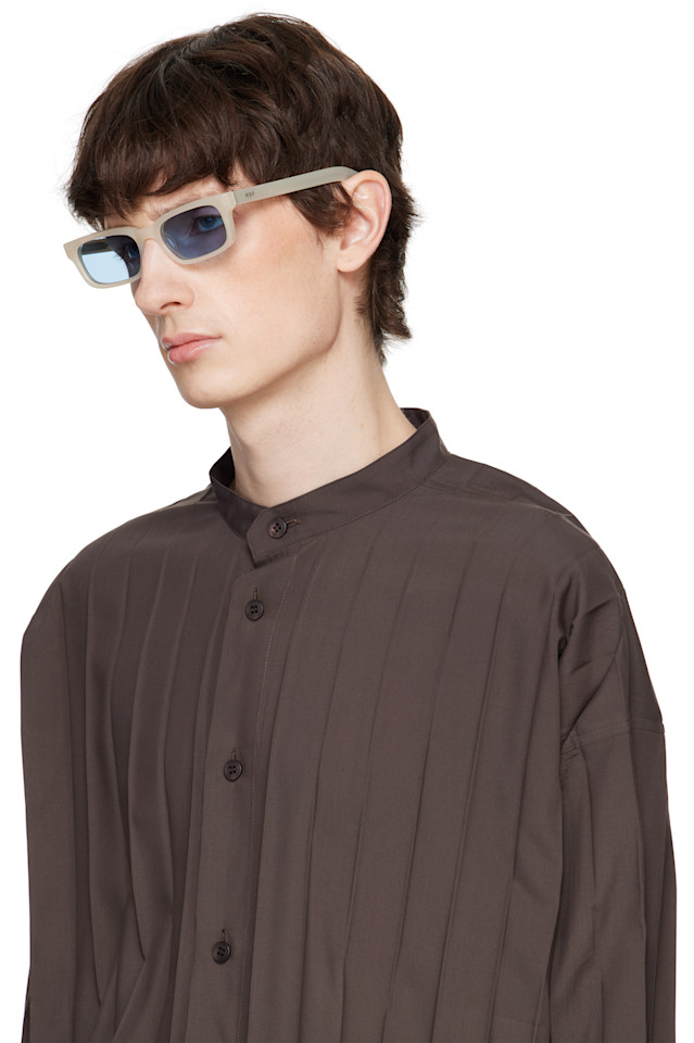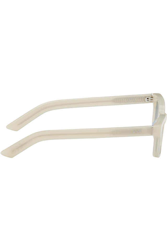 Солнцезащитные очки в прямоугольной полупрозрачной оправе из ацетата кремового оттенка.