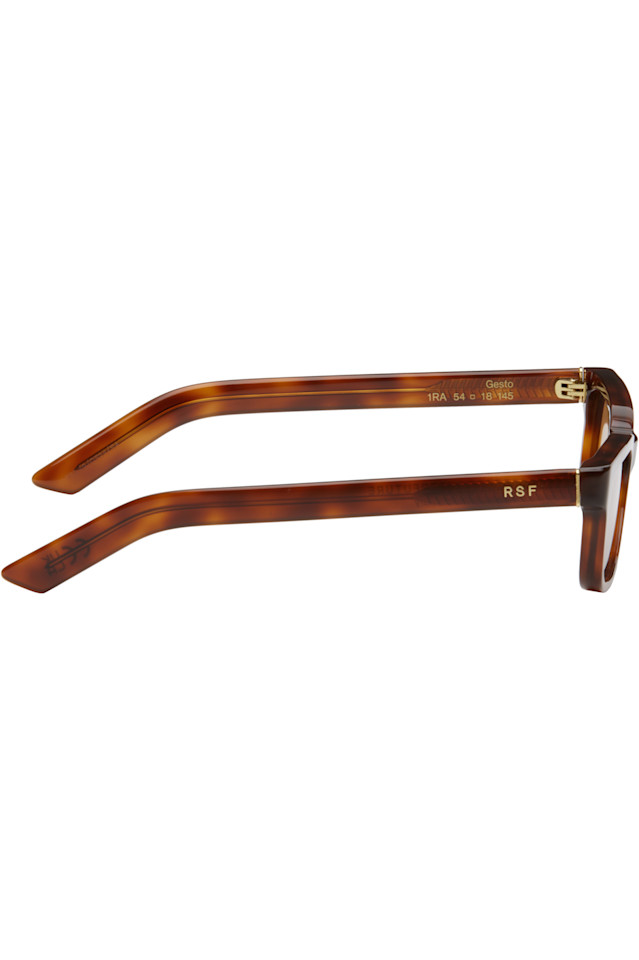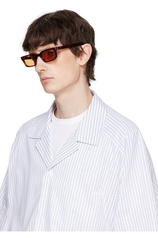 Солнцезащитные очки прямоугольной формы с полупрозрачной оправой из ацетата черепахового цвета коричневого цвета.