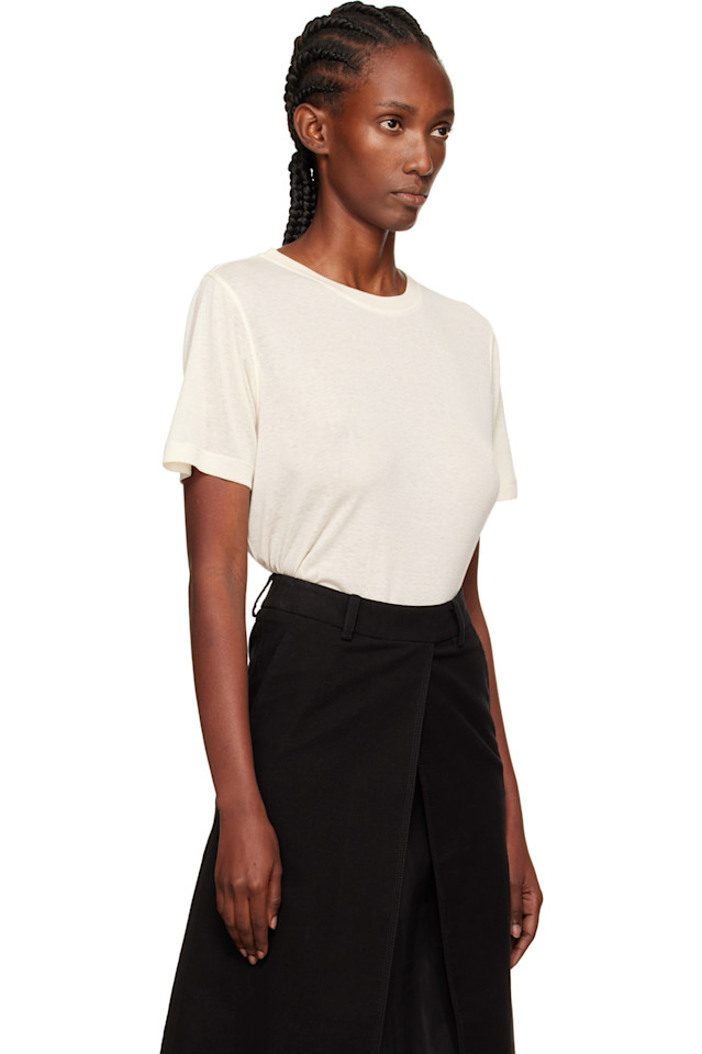 Футболка из полупрозрачного джерси. Круглый вырез горловины из трикотажа.