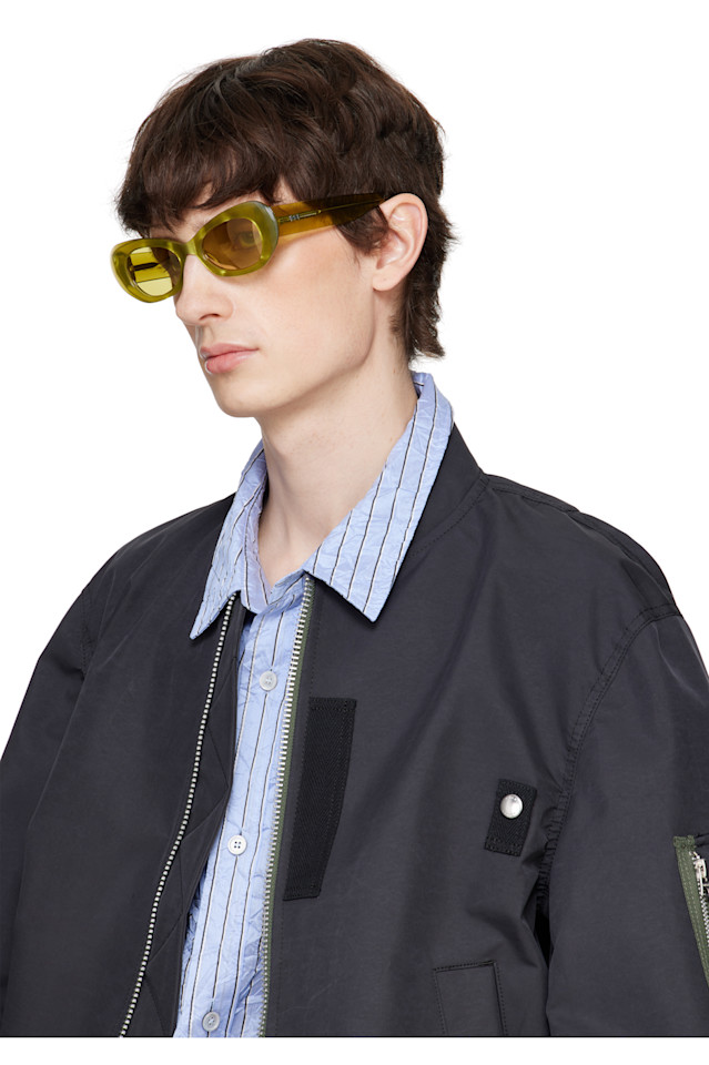Солнцезащитные очки в овальной полупрозрачной оправе из ацетата желтого цвета.