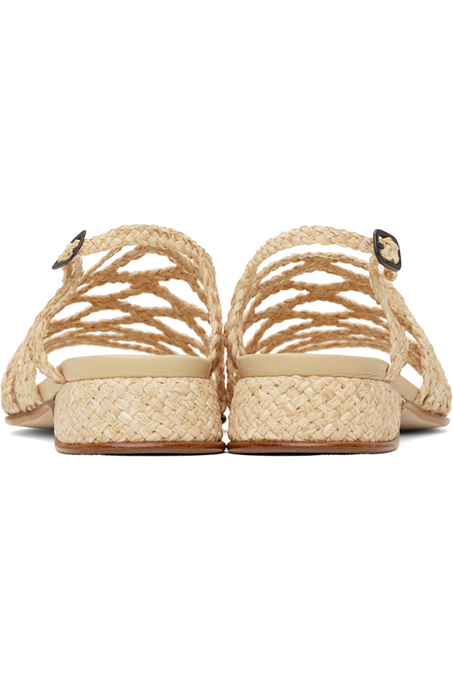 Сандалии ручной работы из плетеной рафии бежевого цвета.