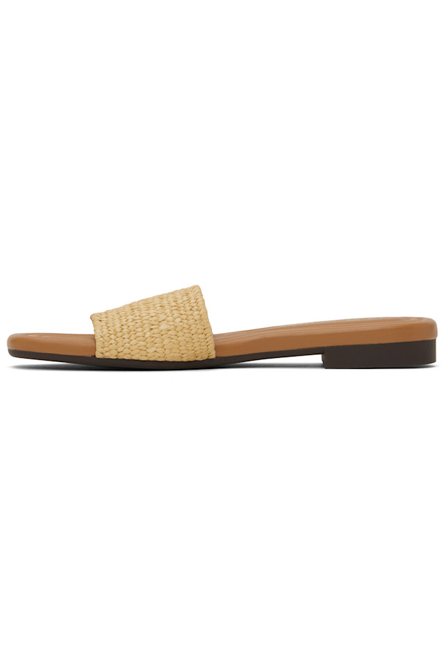 Плетеные сандалии без застежек светло-коричневого цвета.