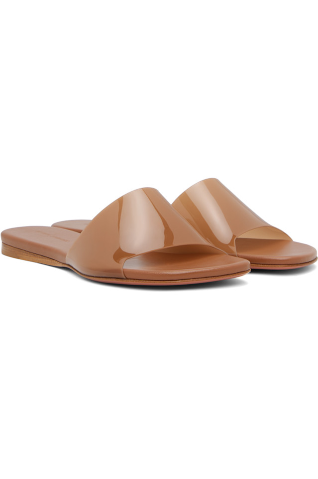 Прозрачные виниловые сандалии коричневого цвета.